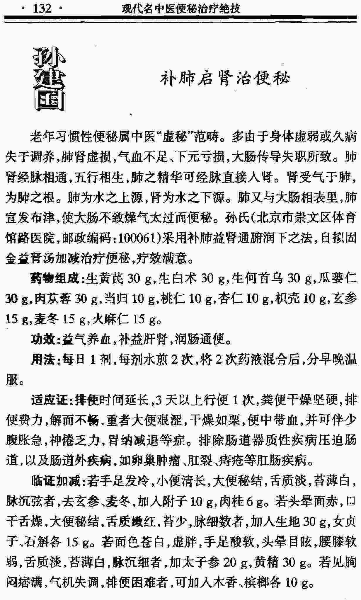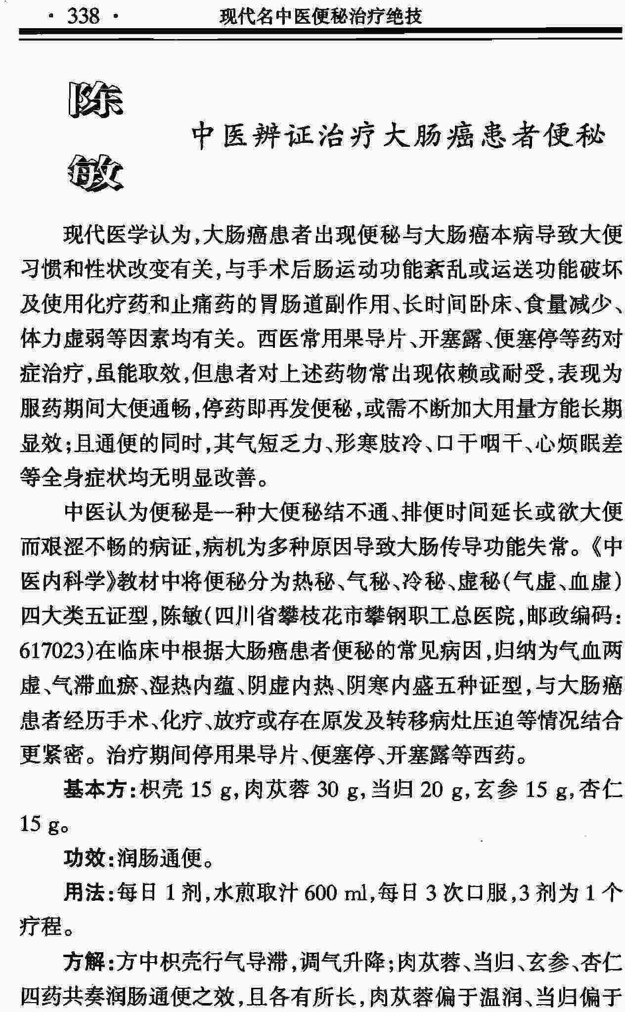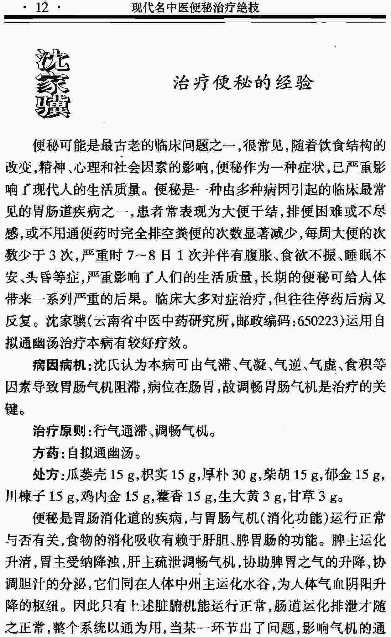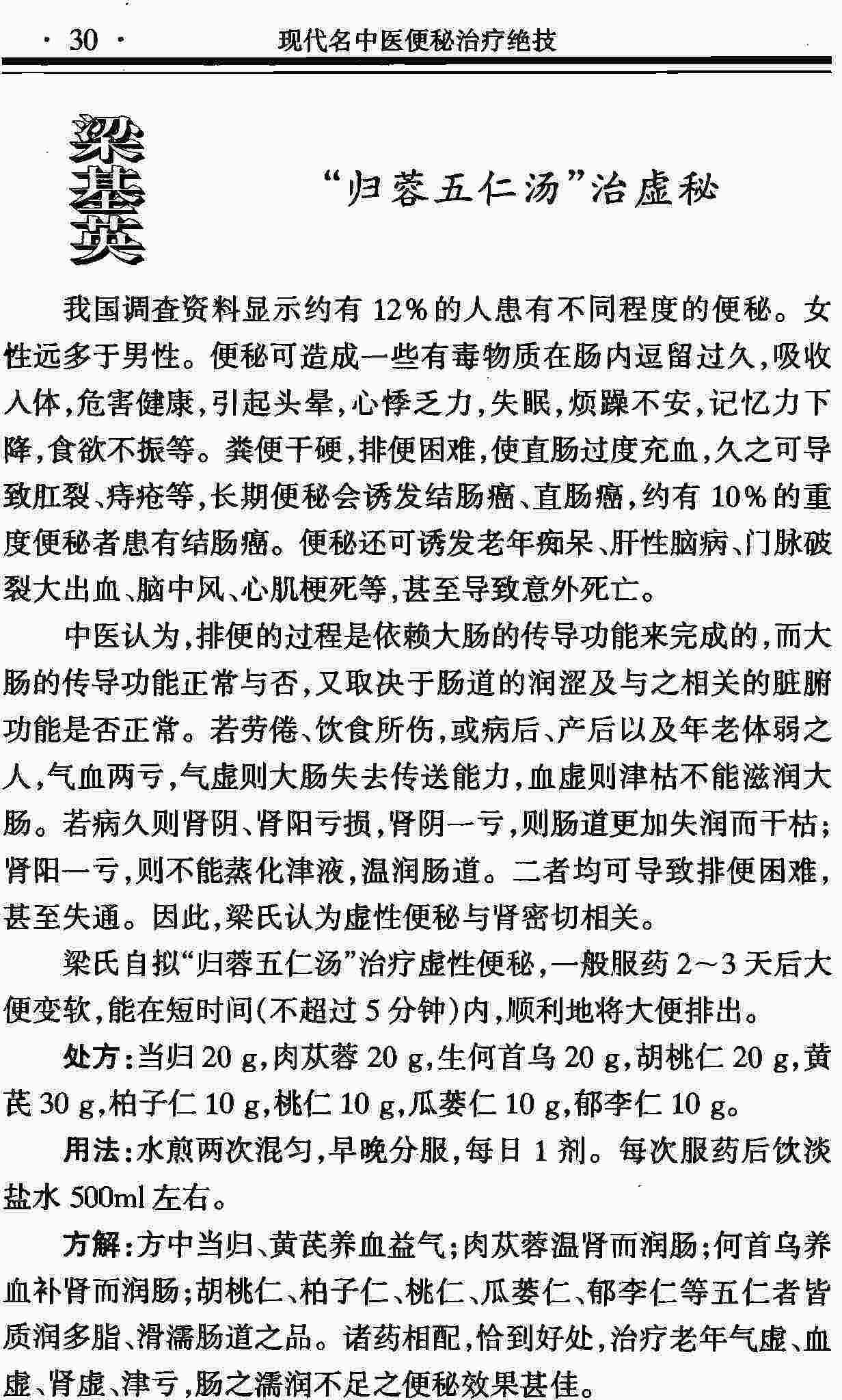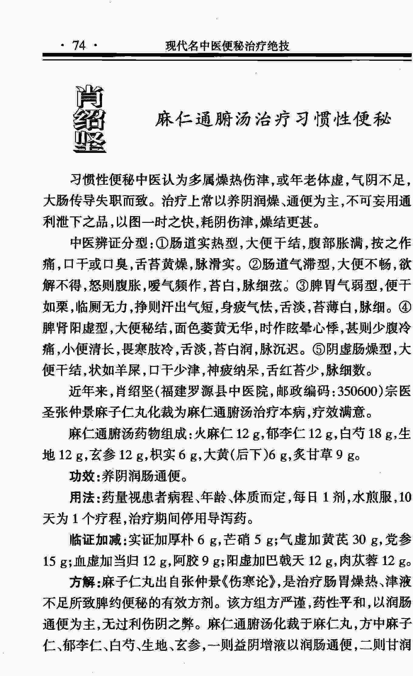 肖绍坚 麻仁通腑汤治疗习惯性便秘