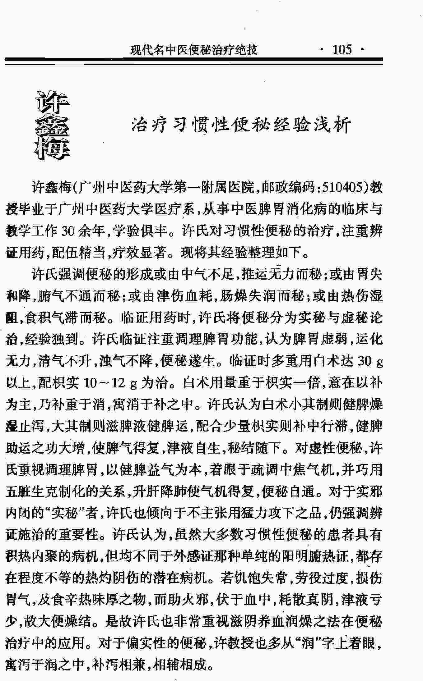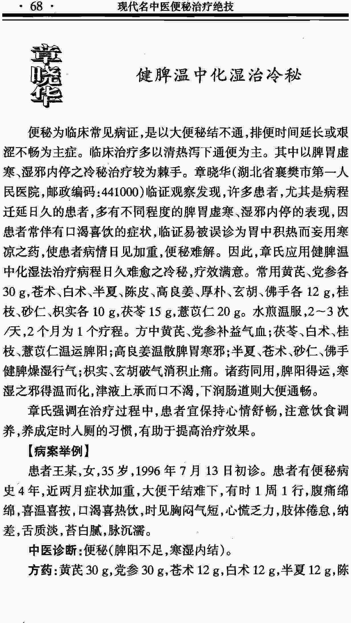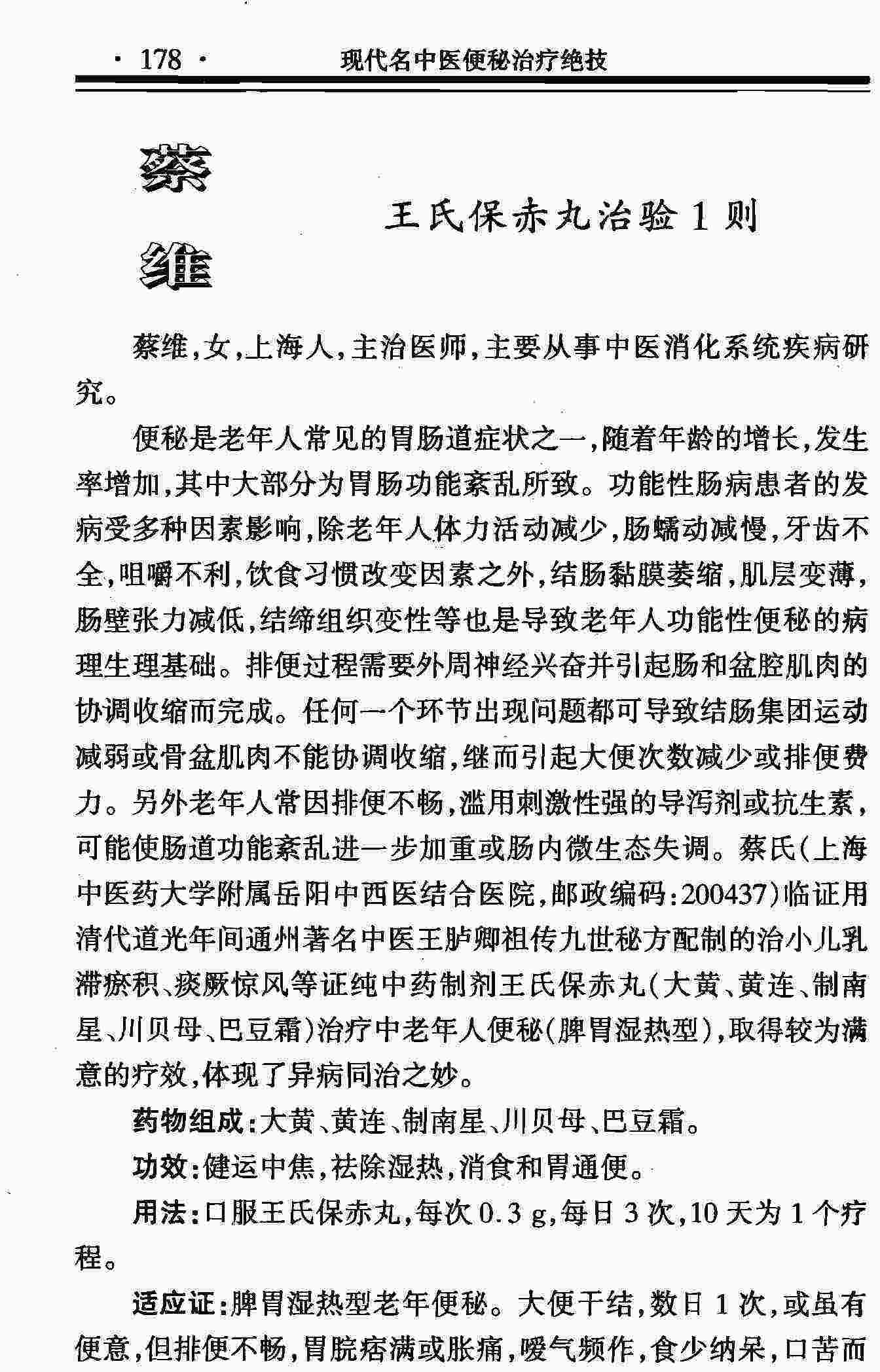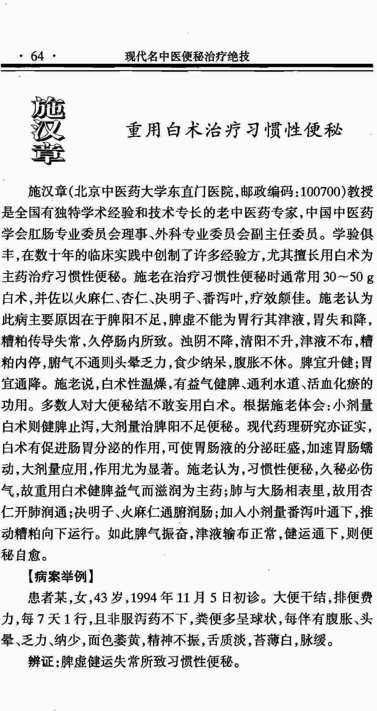 肖绍坚 麻仁通腑汤治疗习惯性便秘