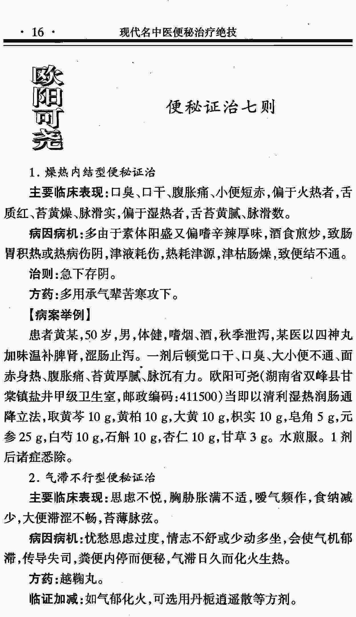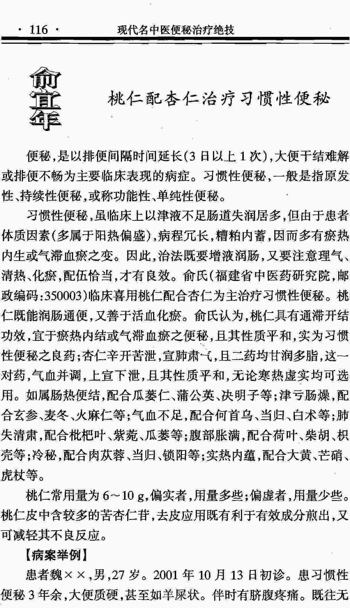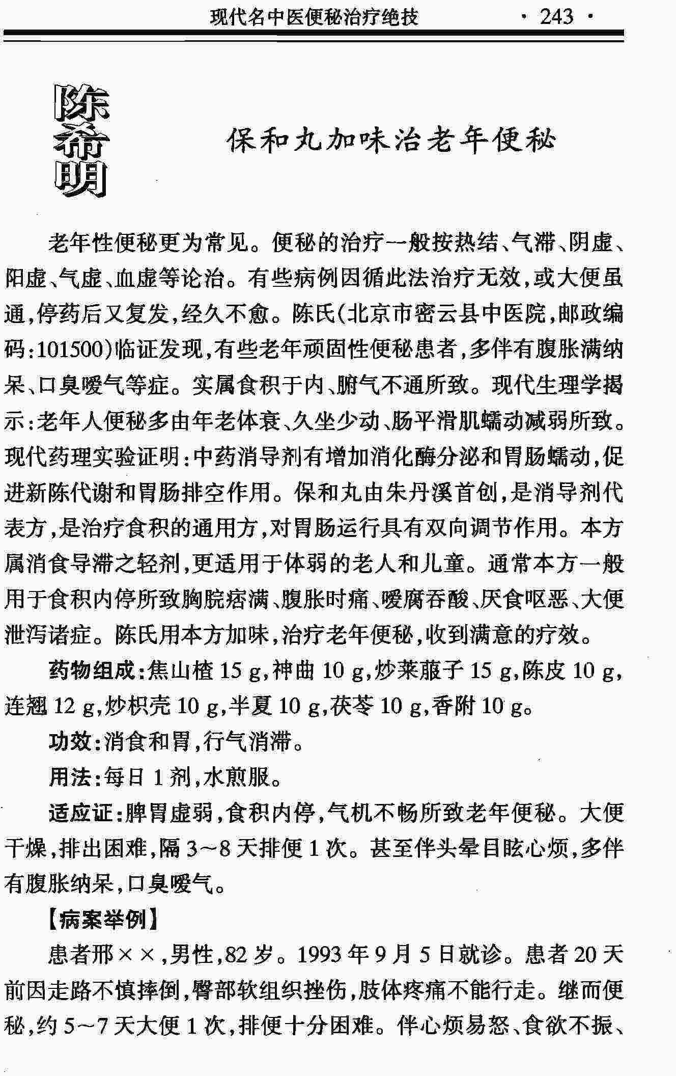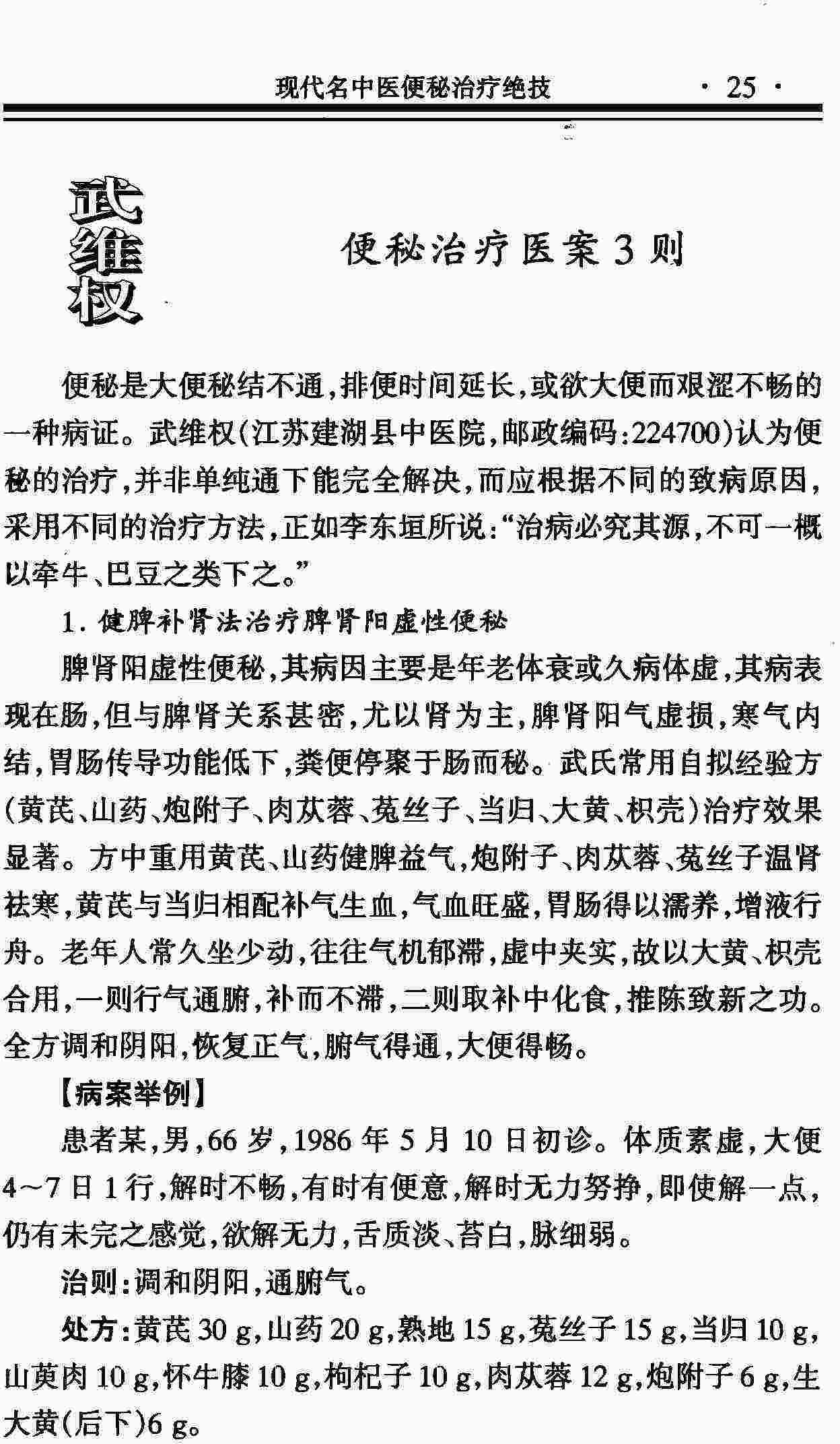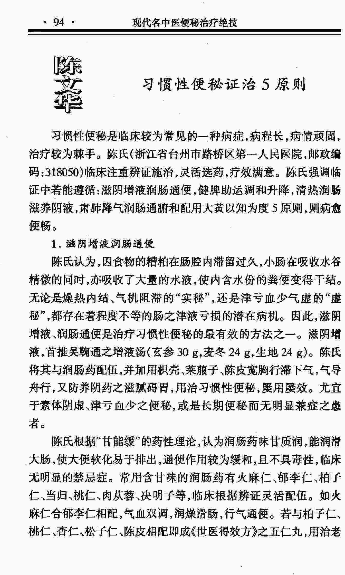 肖绍坚 麻仁通腑汤治疗习惯性便秘
