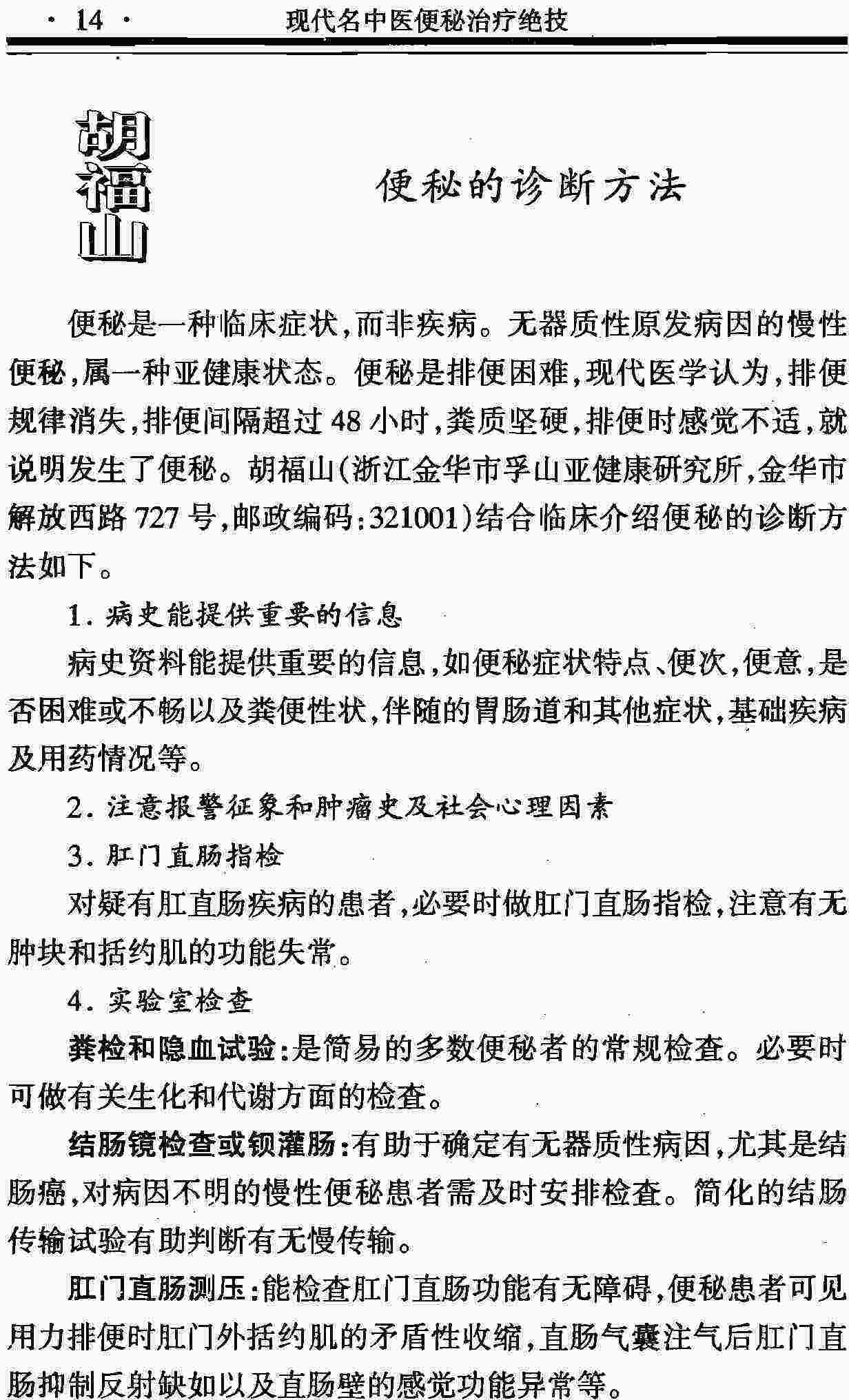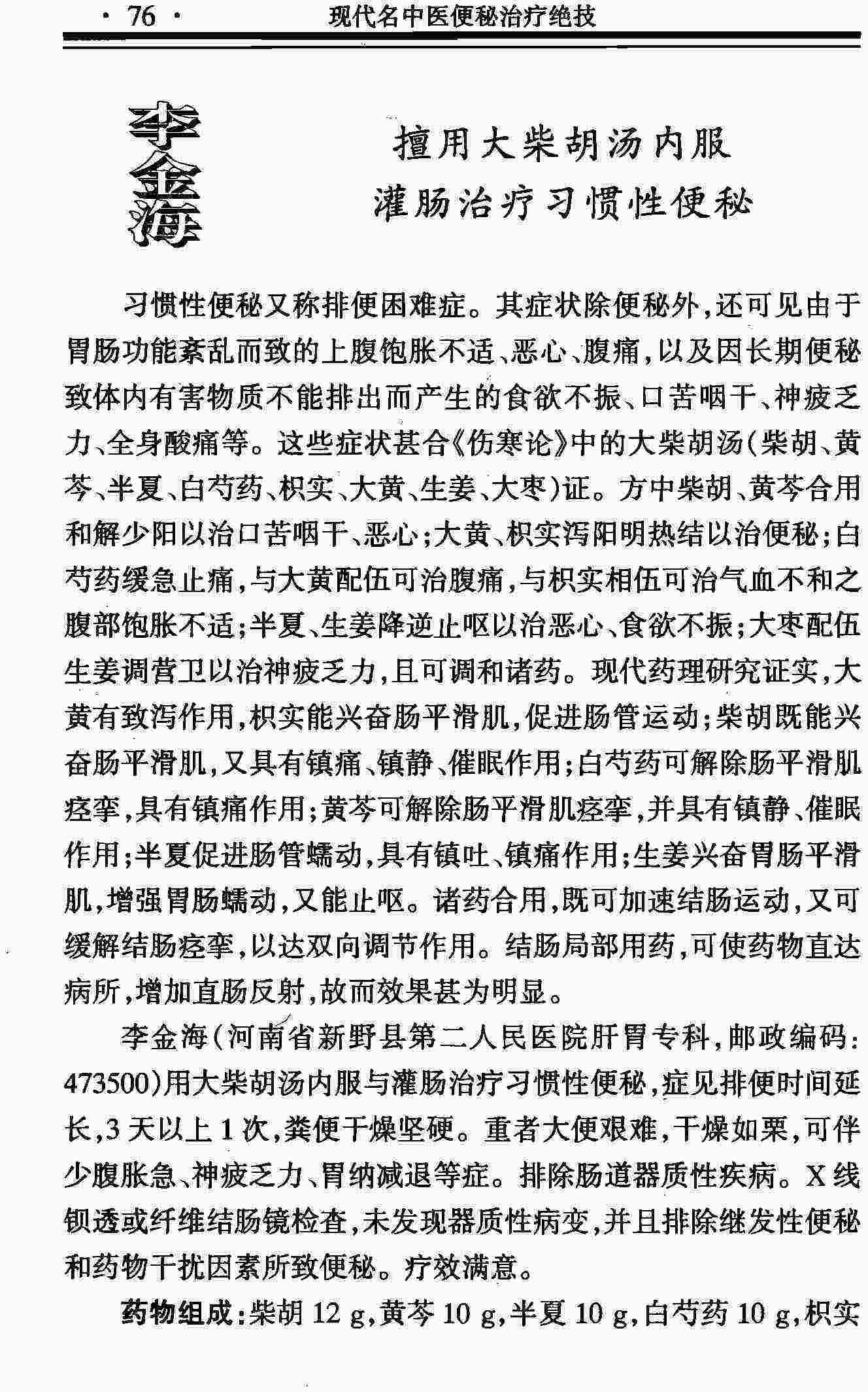 李金海 擅用大柴胡汤内服灌肠治疗习惯性便秘
