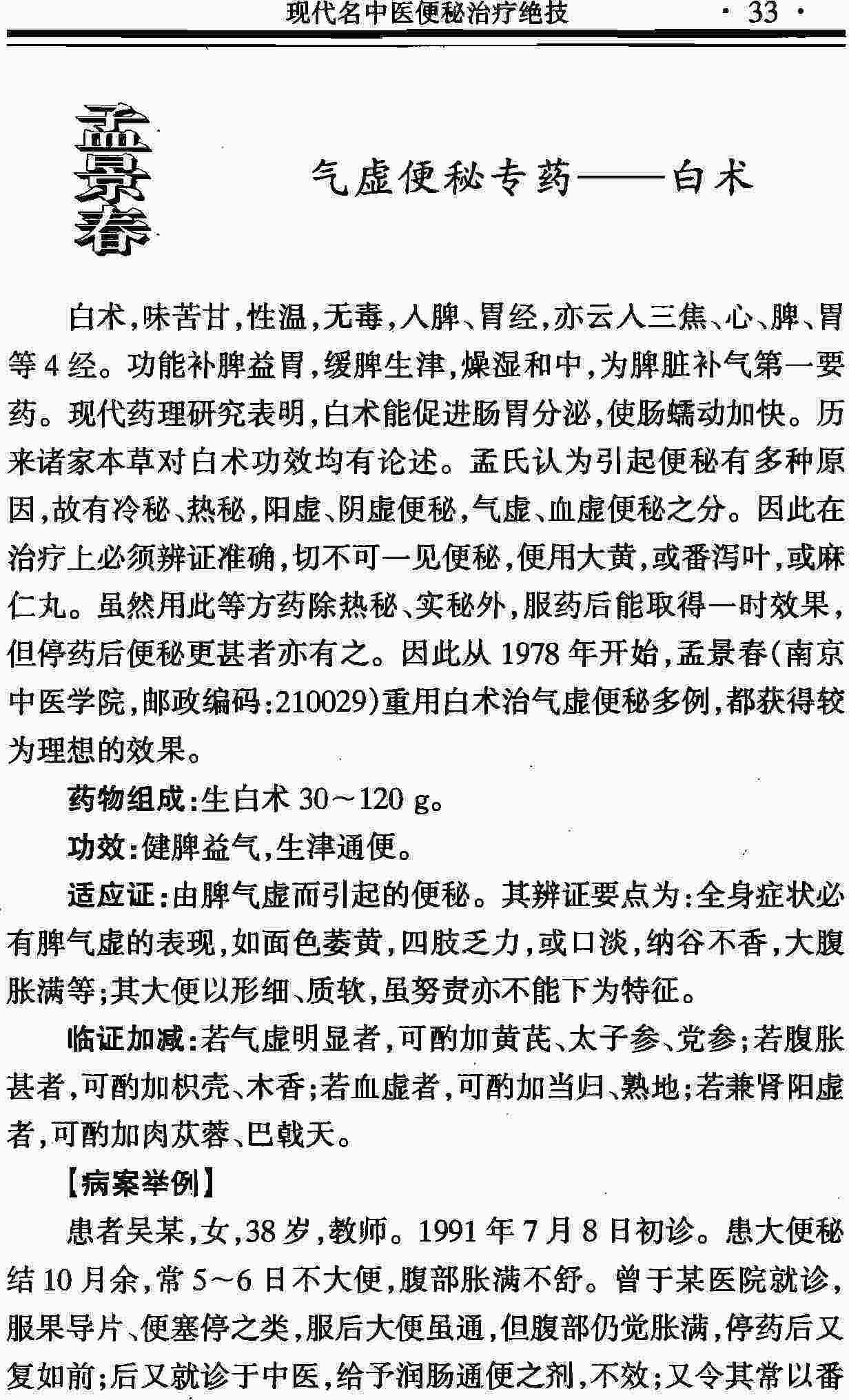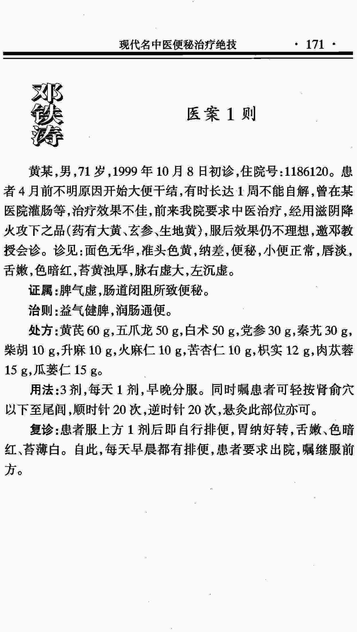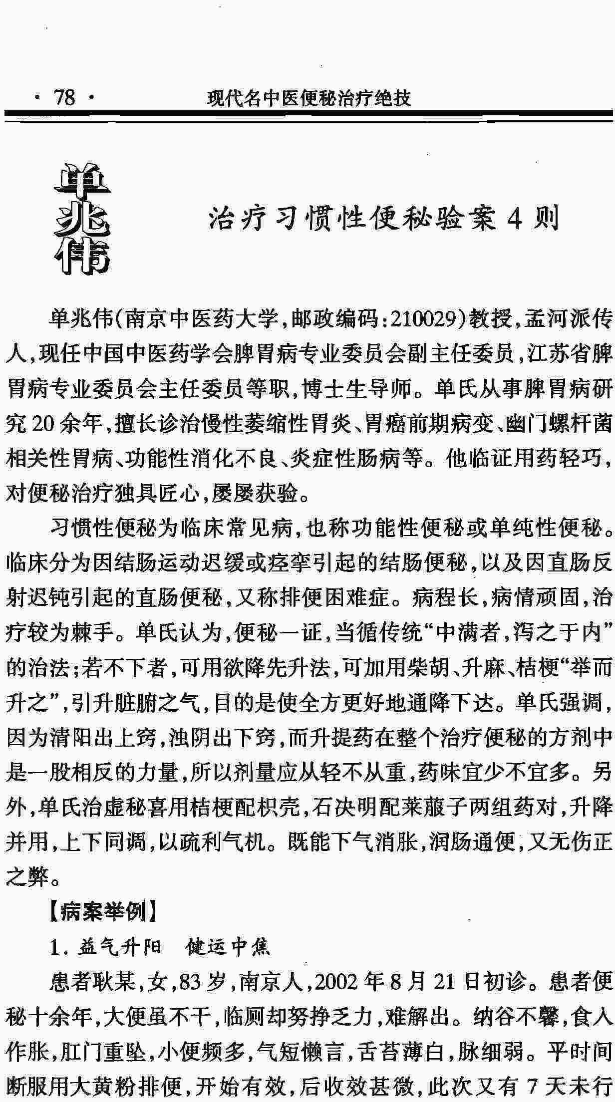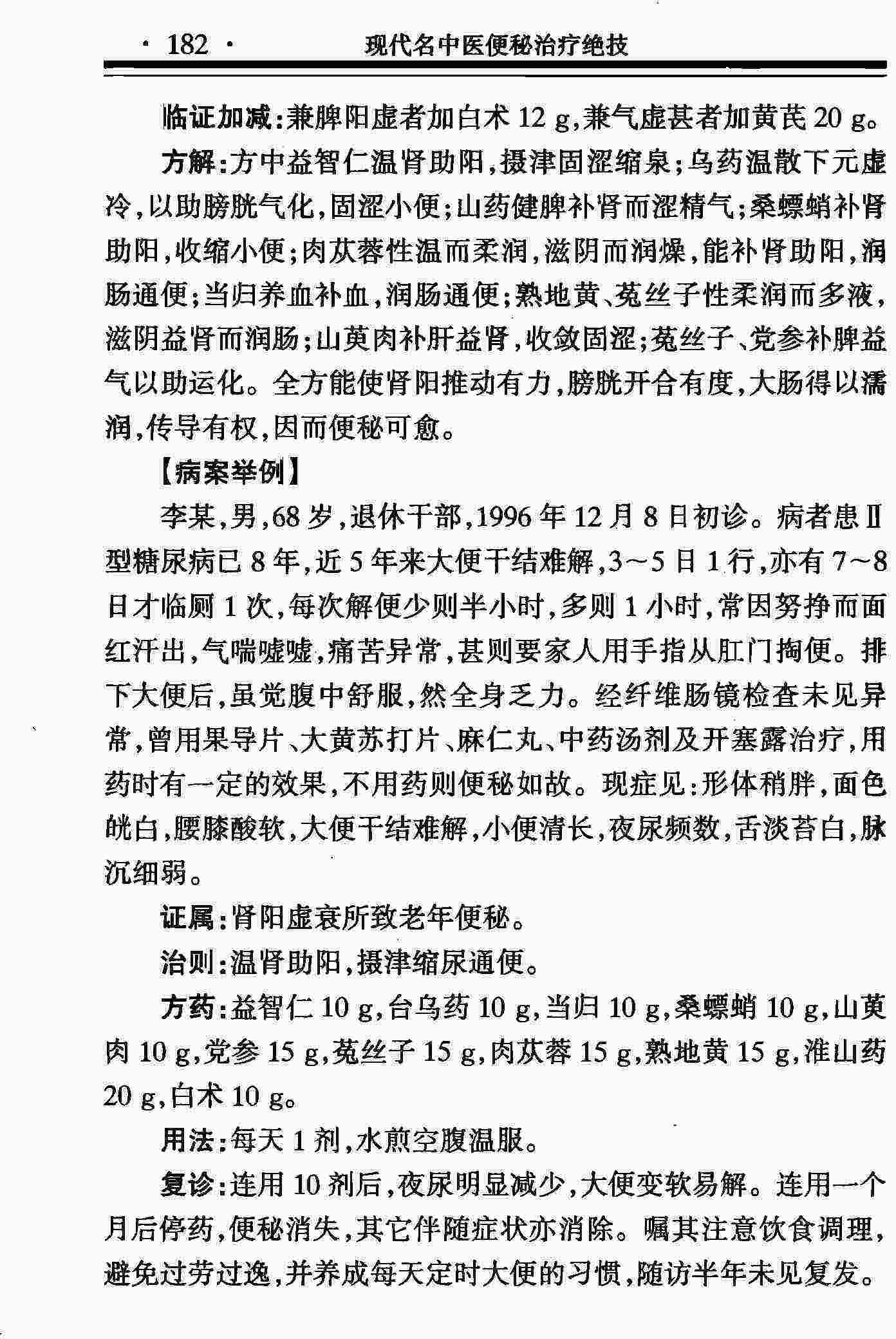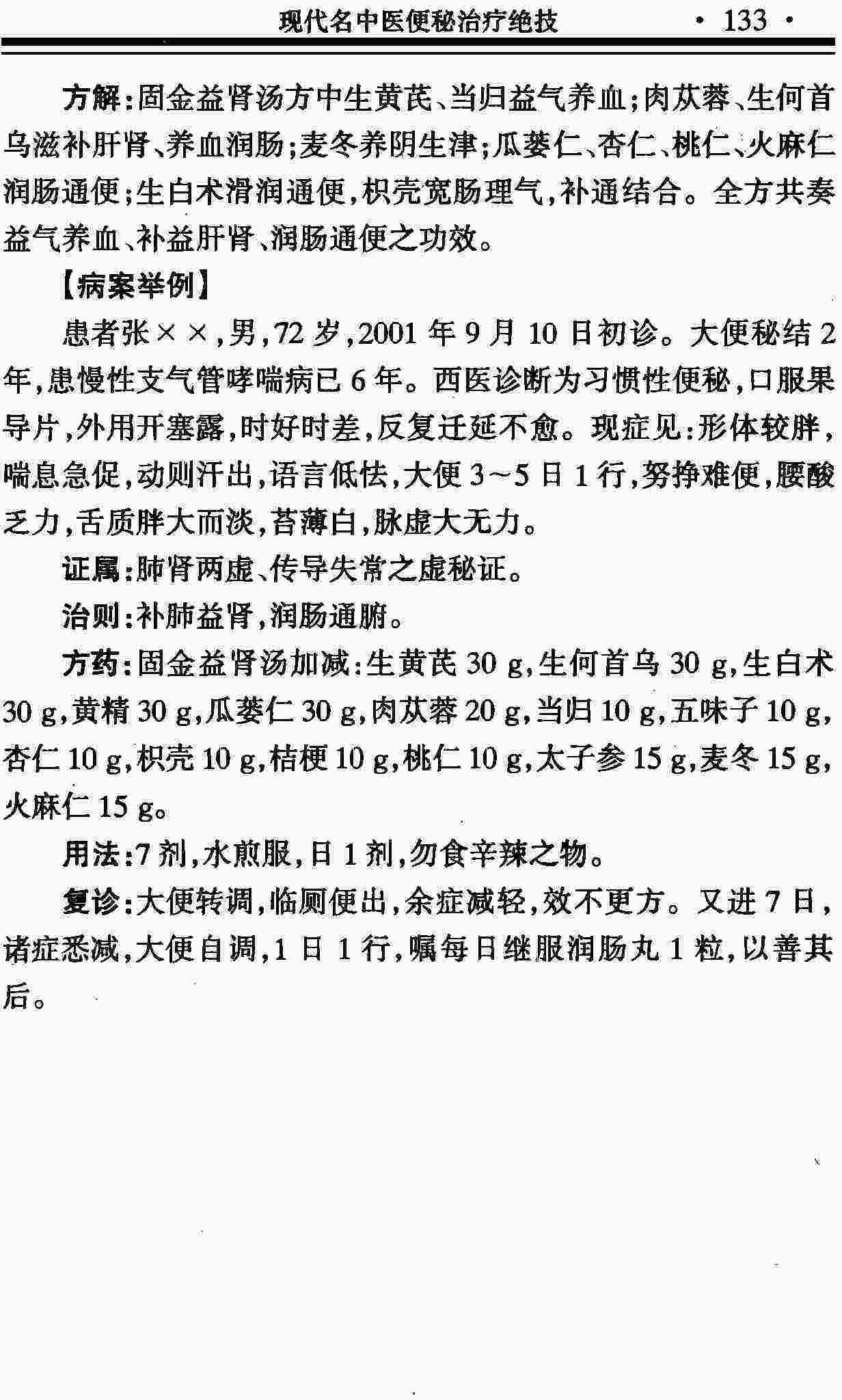 翁工清 生地白术桃花汤治疗老年习惯性便秘