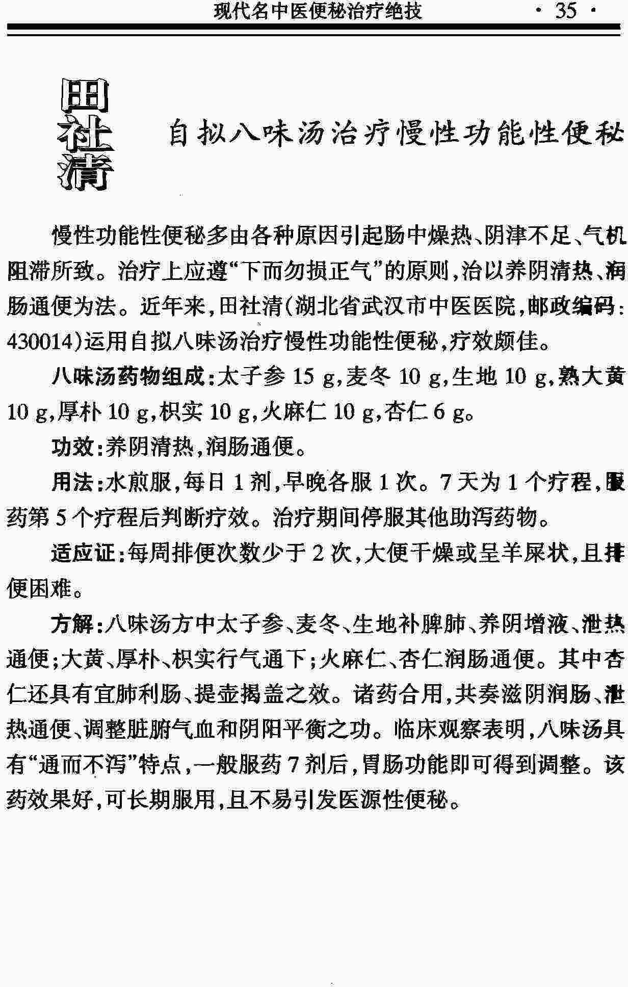 田社清 自拟八咖汤治疗慢性功能性便秘