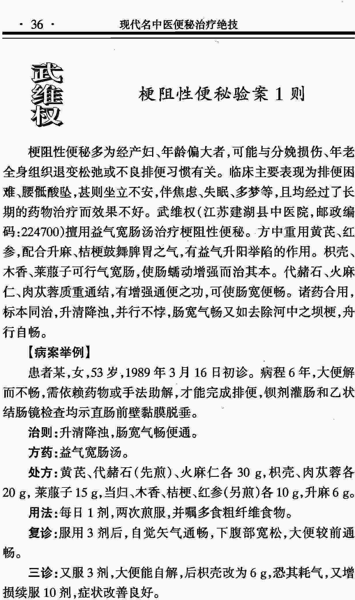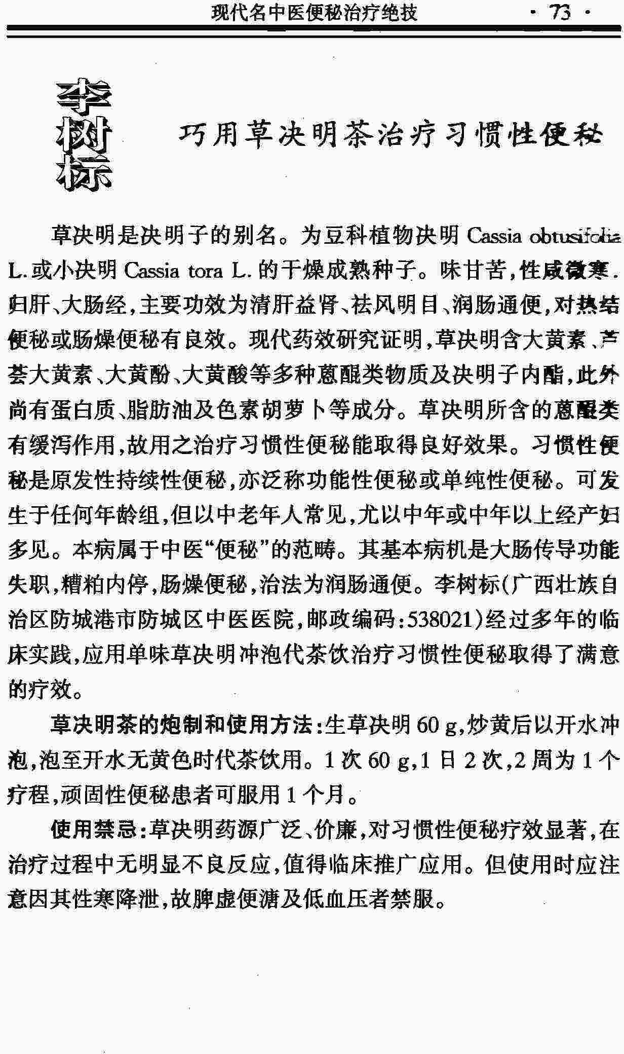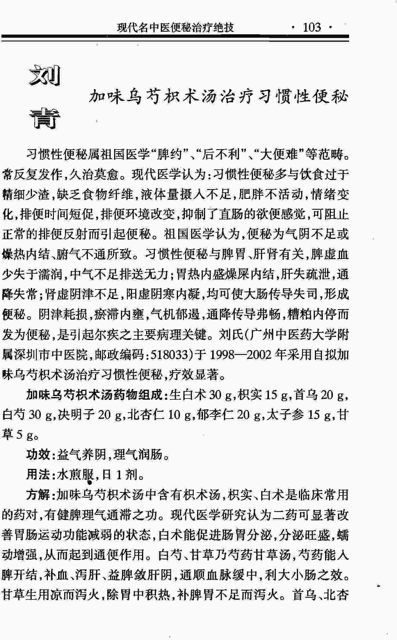 刘青 加味乌芍枳术汤治疗习惯性便秘