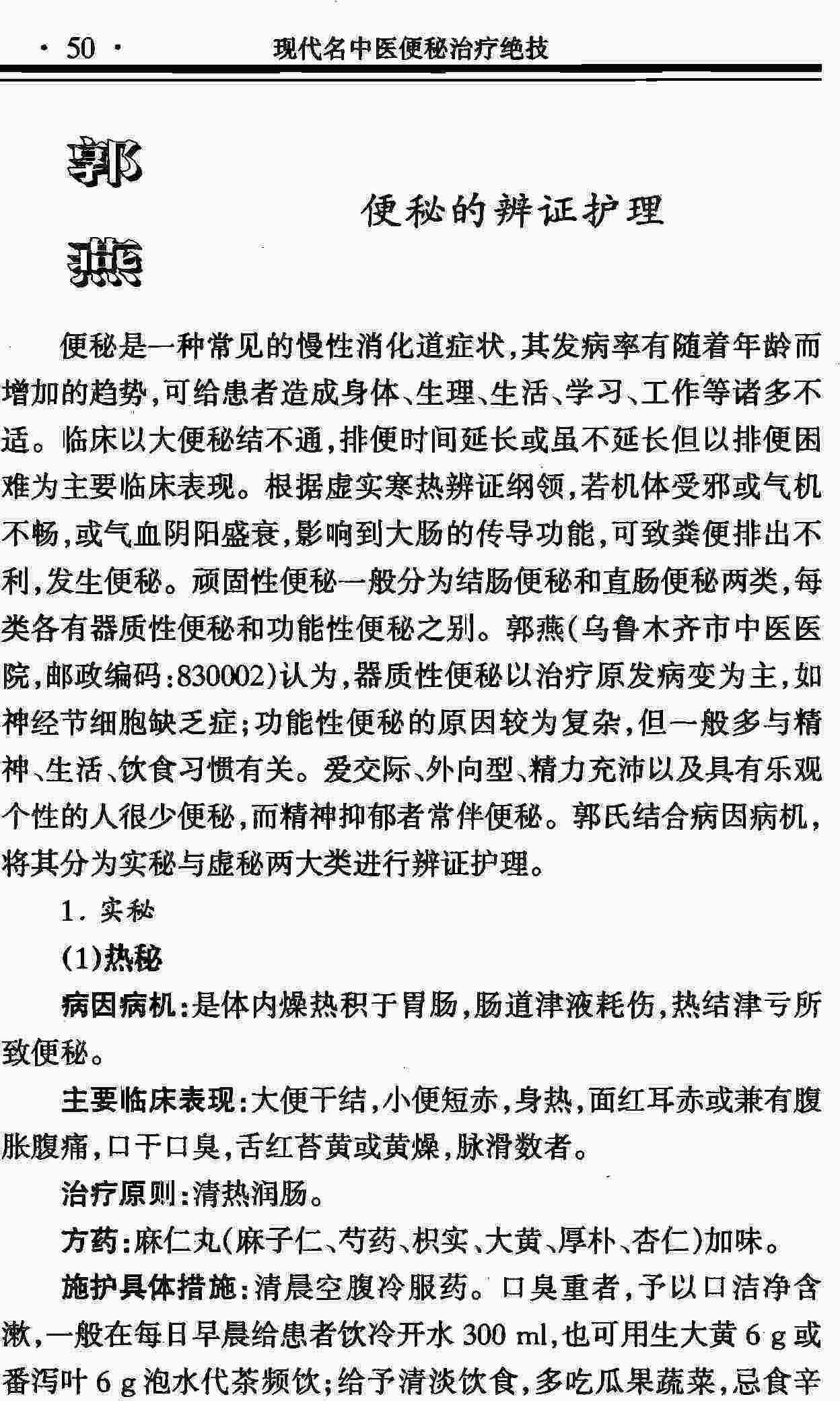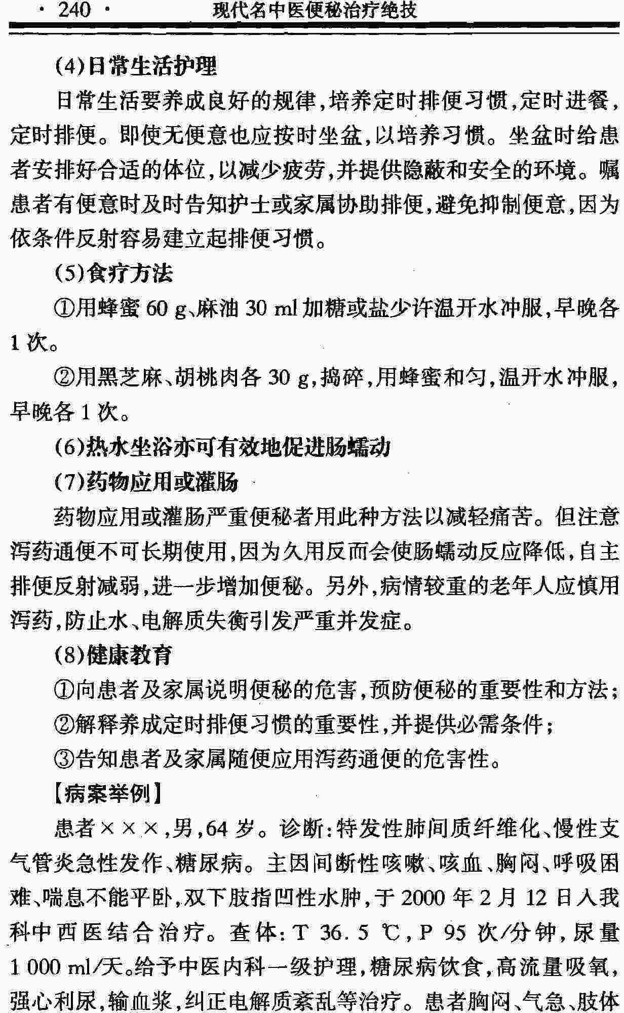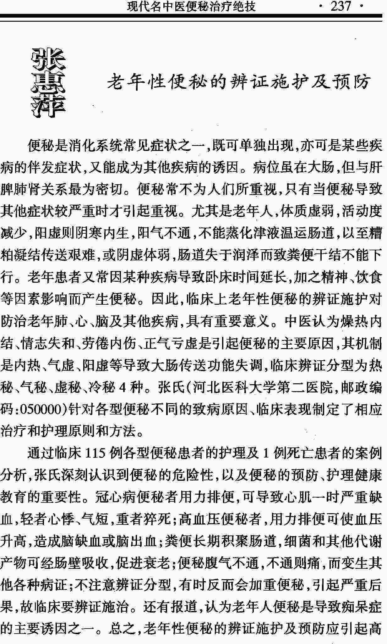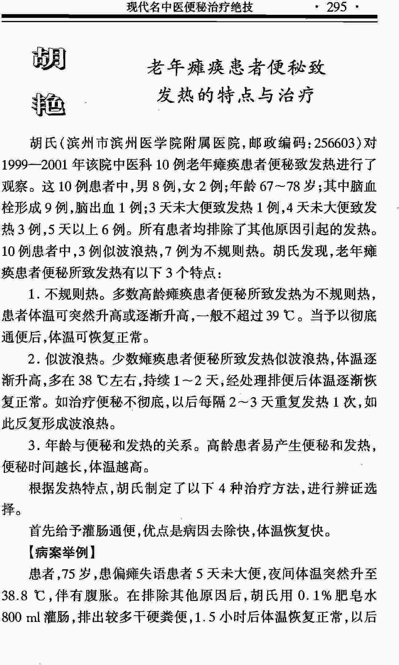 胡艳 老年瘫疾患者便秘致发热的特点与治疗