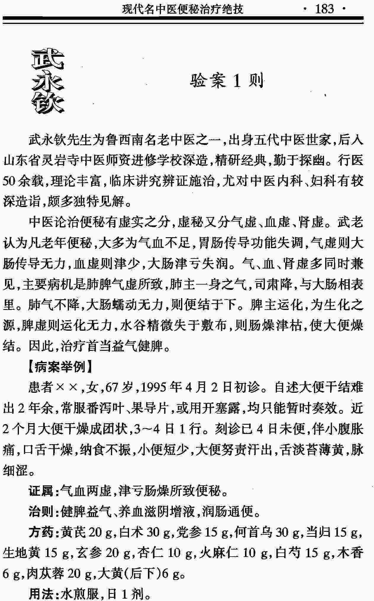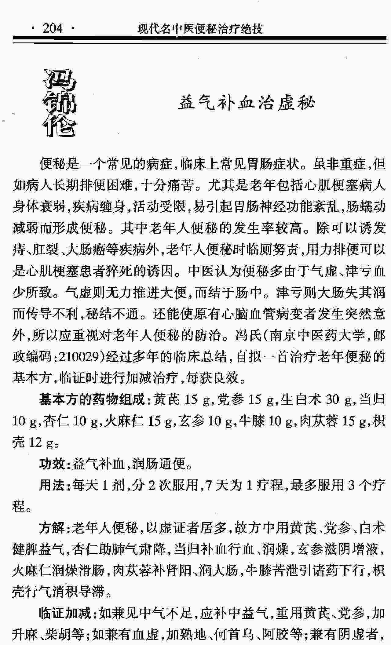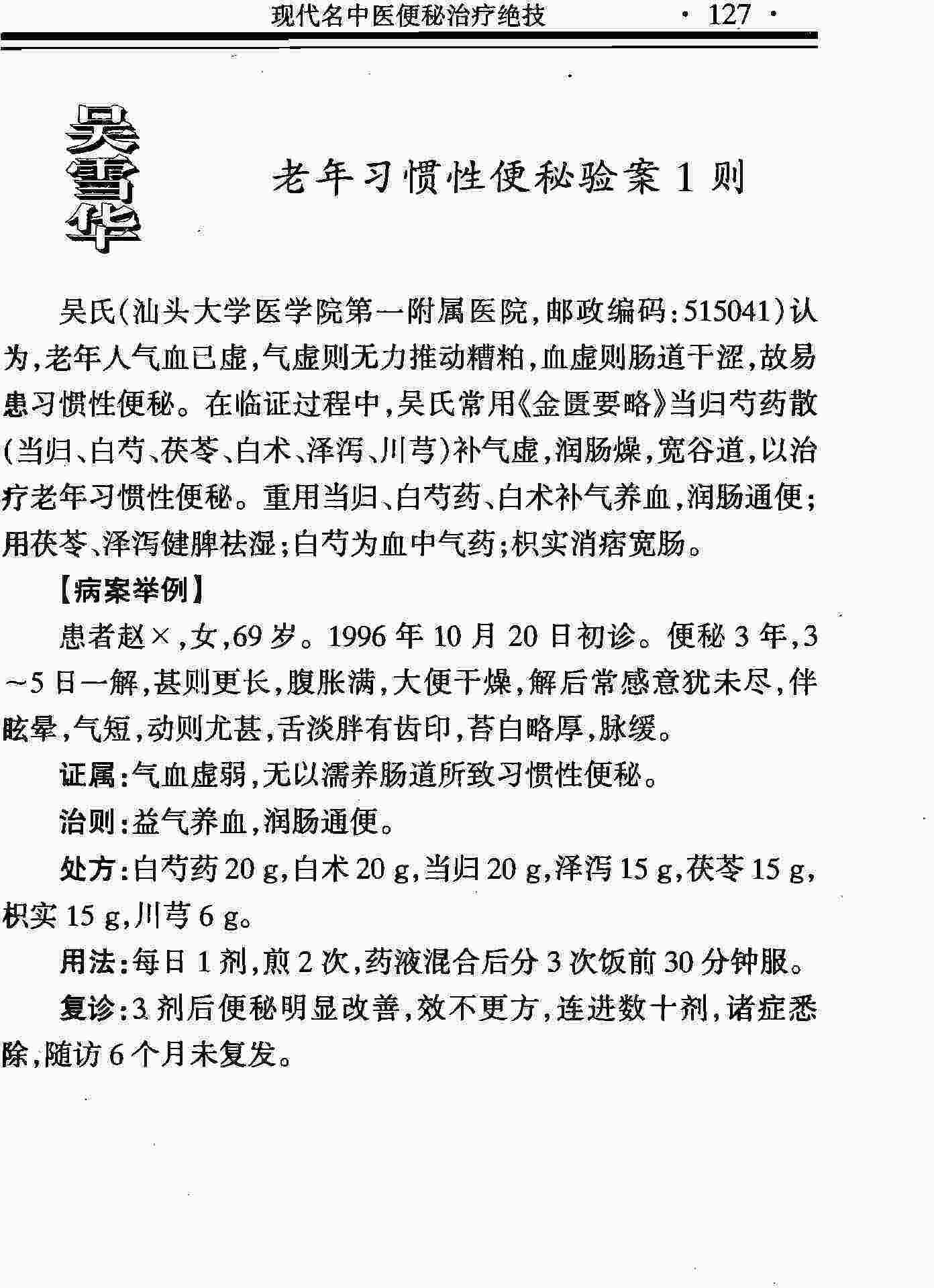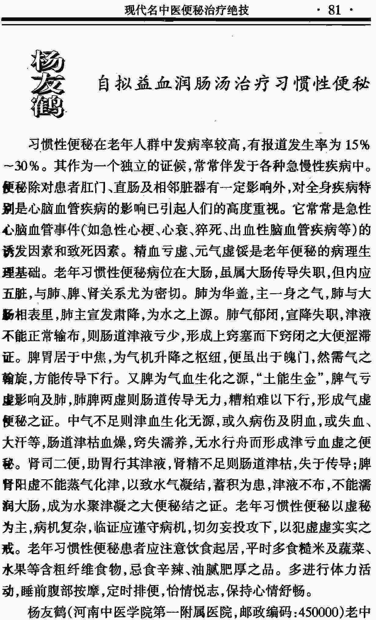 杨友鹤 自拟益血涧肠汤治疗习惯性便秘