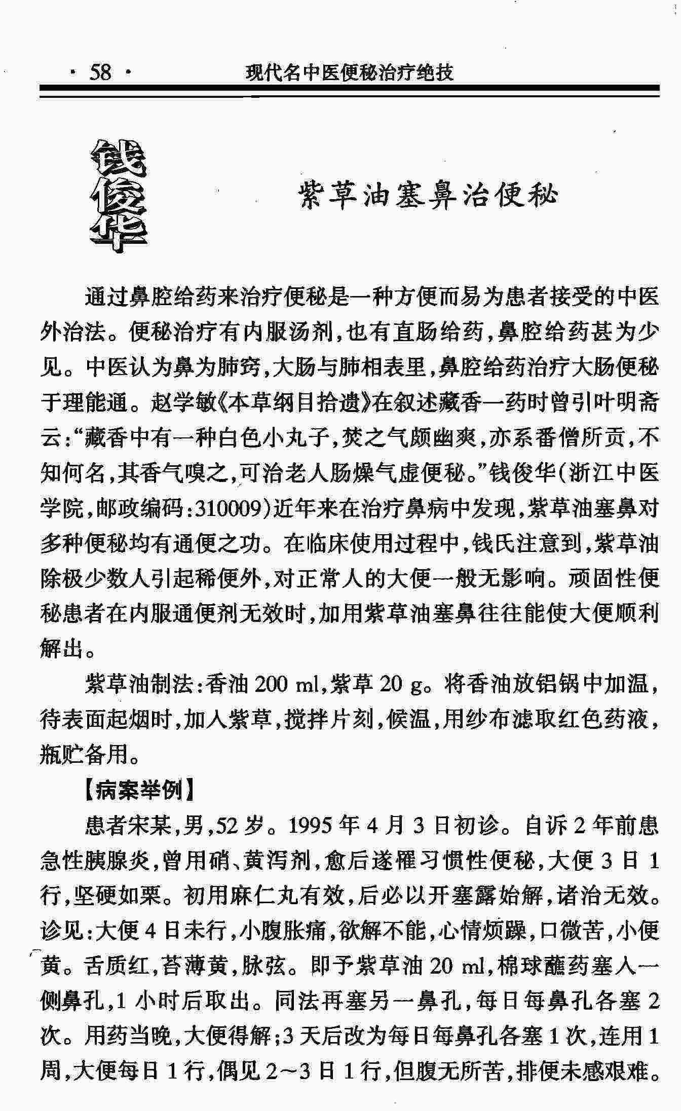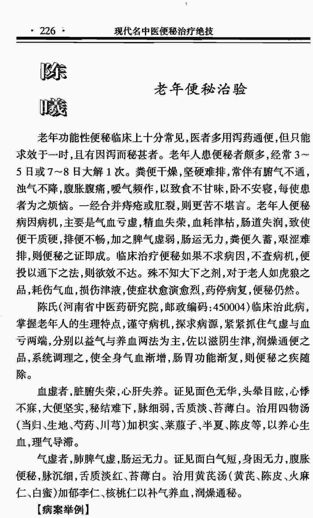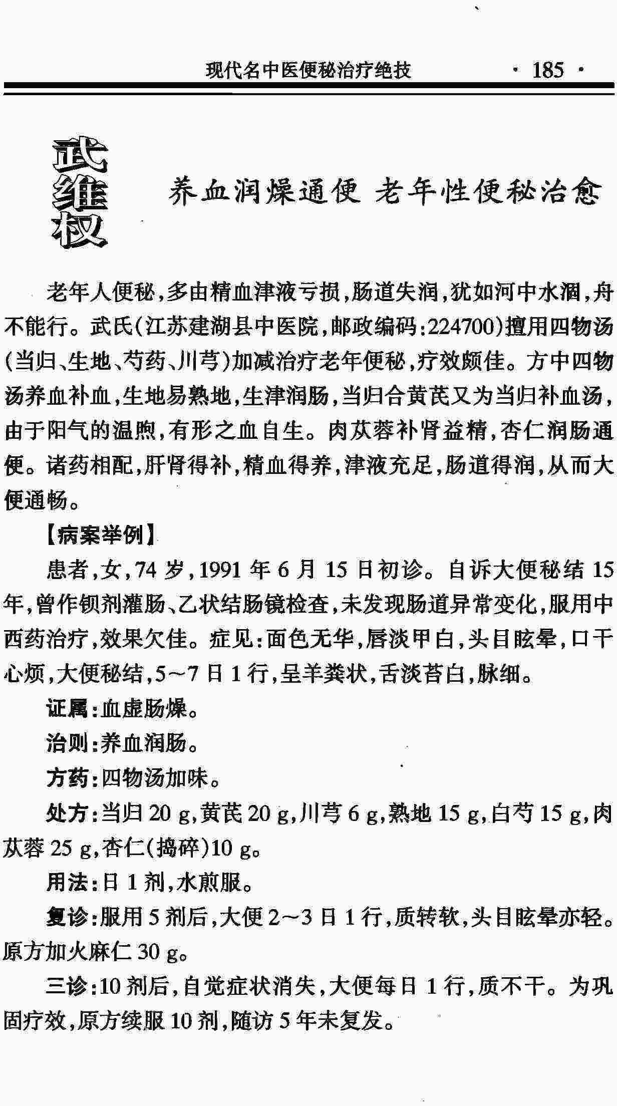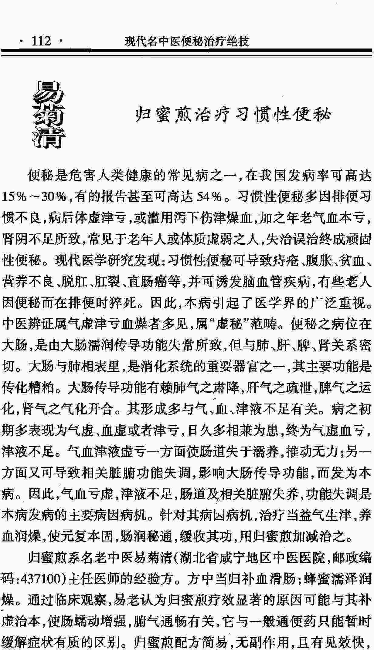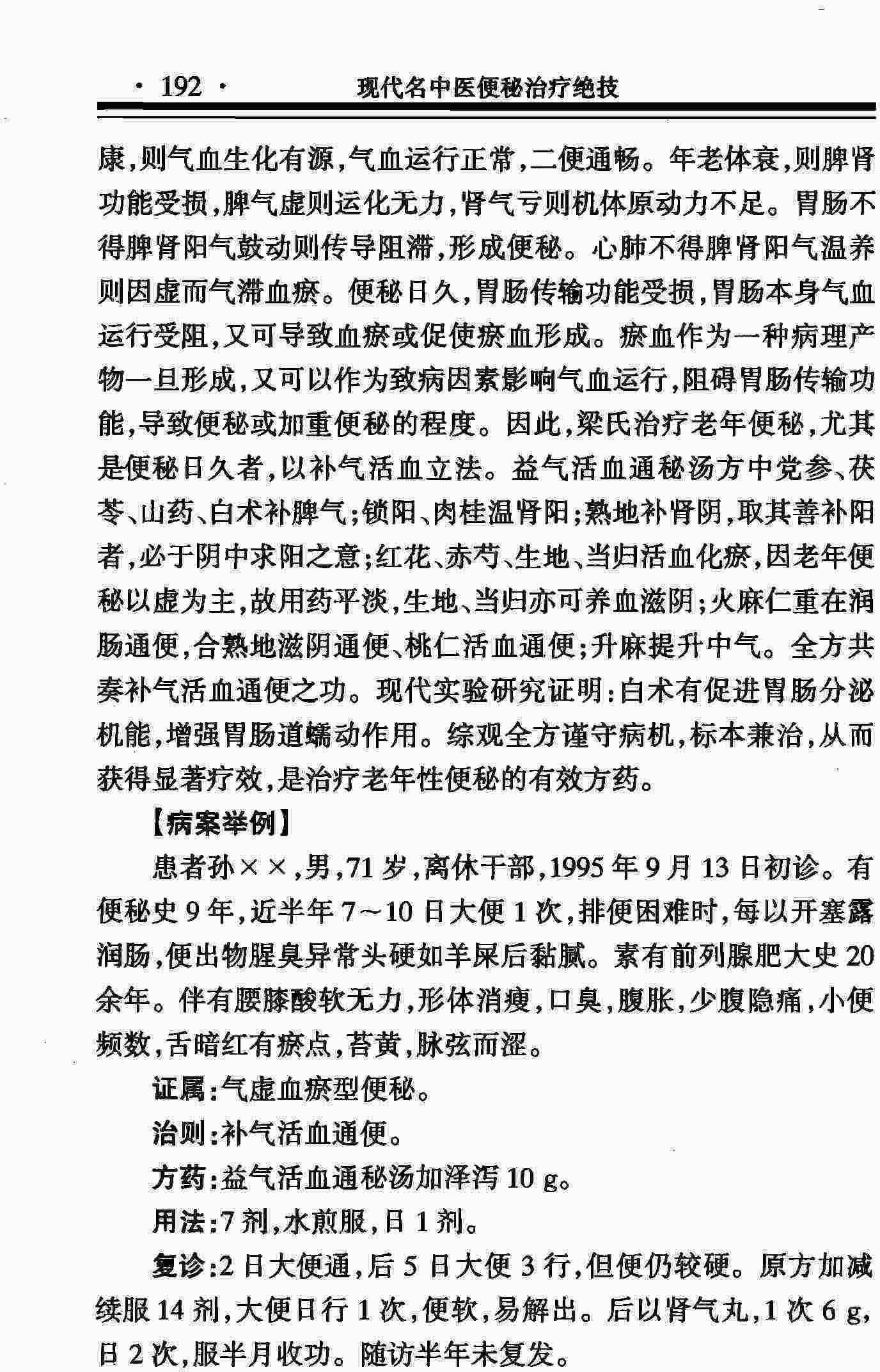 杨友鹤 自拟益血涧肠汤治疗习惯性便秘