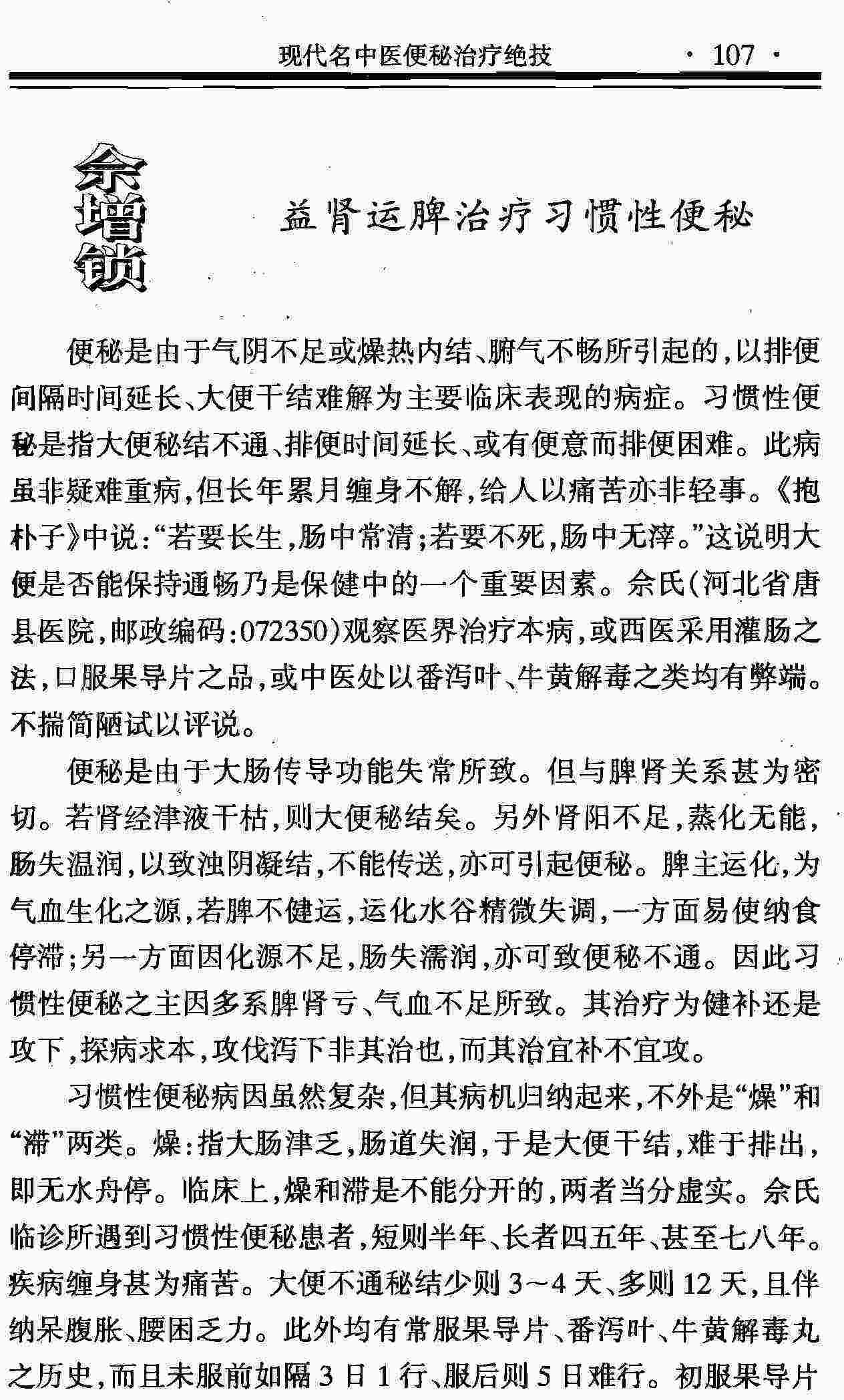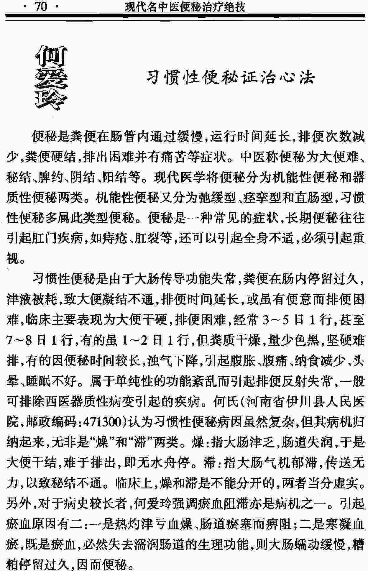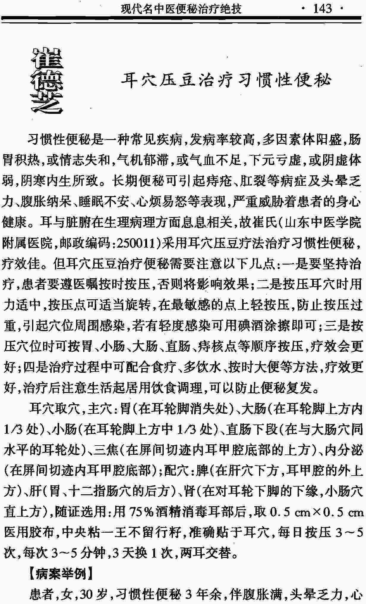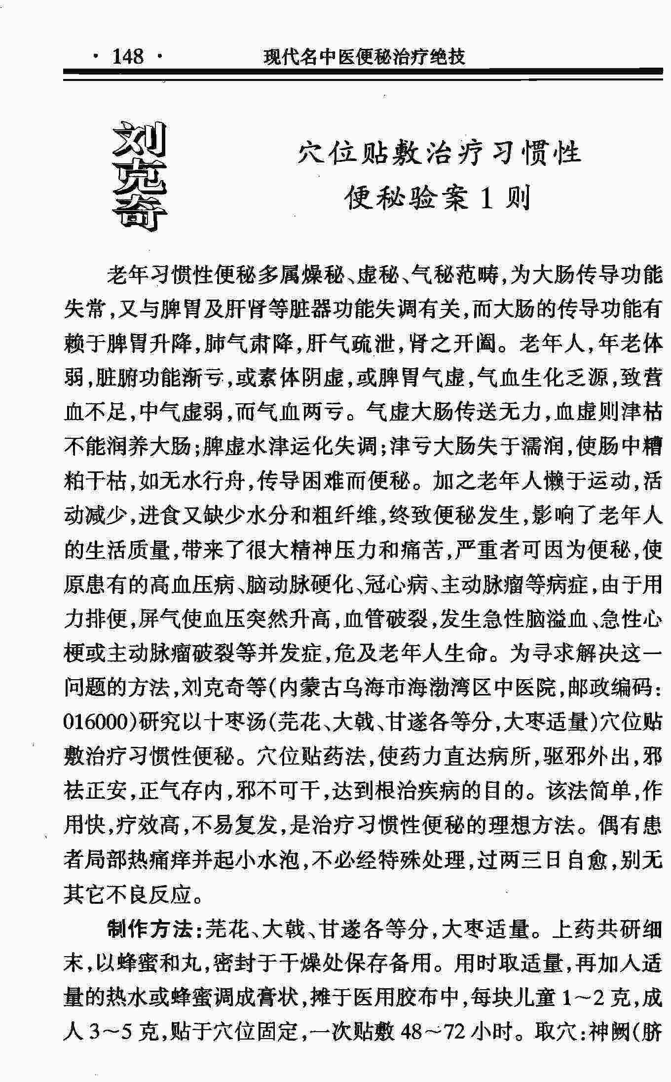 刘克奇 穴位贴敷治疗习惯性便秘验案1则