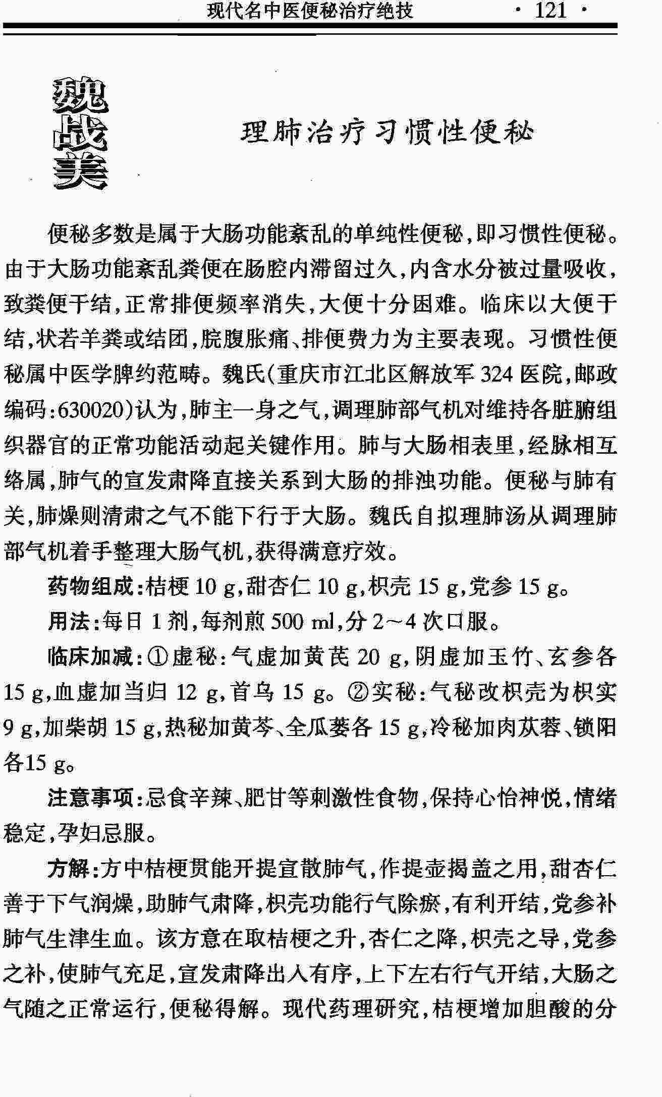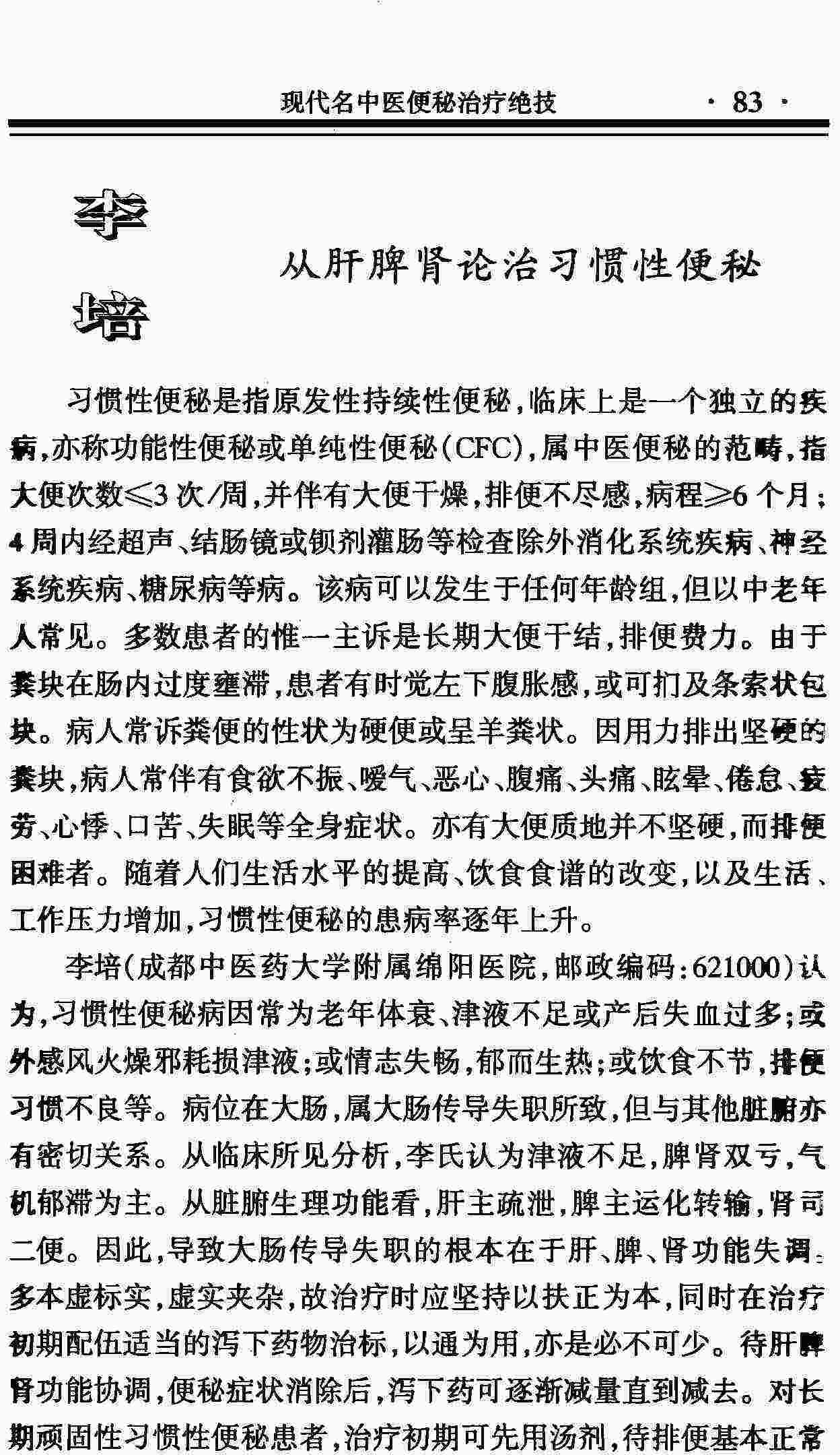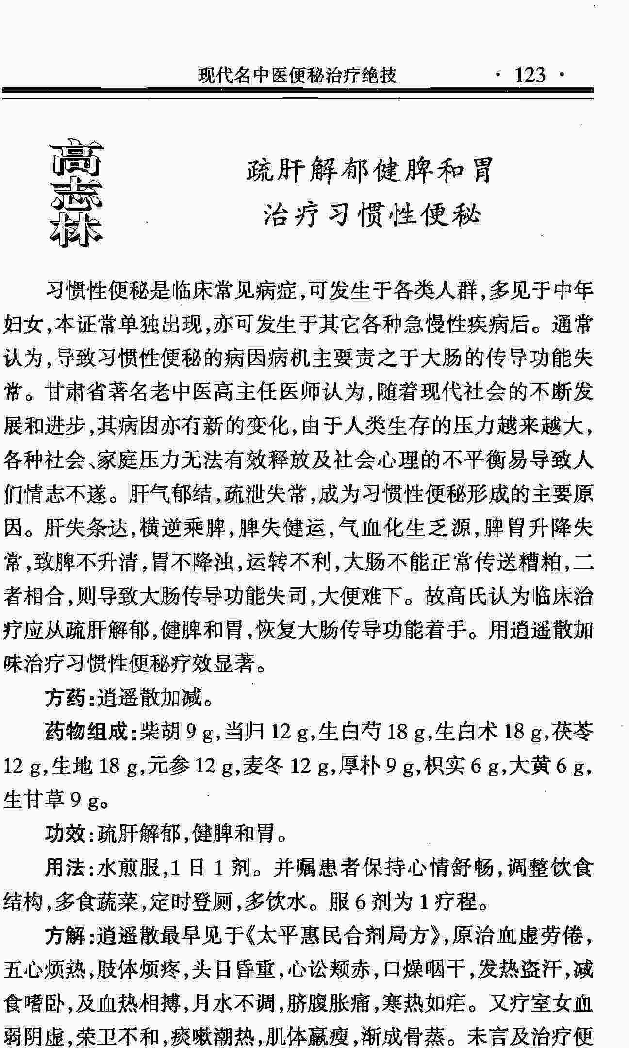 高志林 疏肝解郁健脾和胃 治疗习惯性便秘