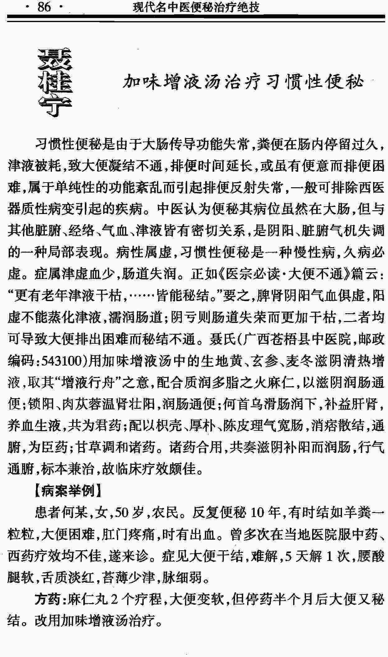聂桂宁 加昧增液汤治疗习惯性便秘