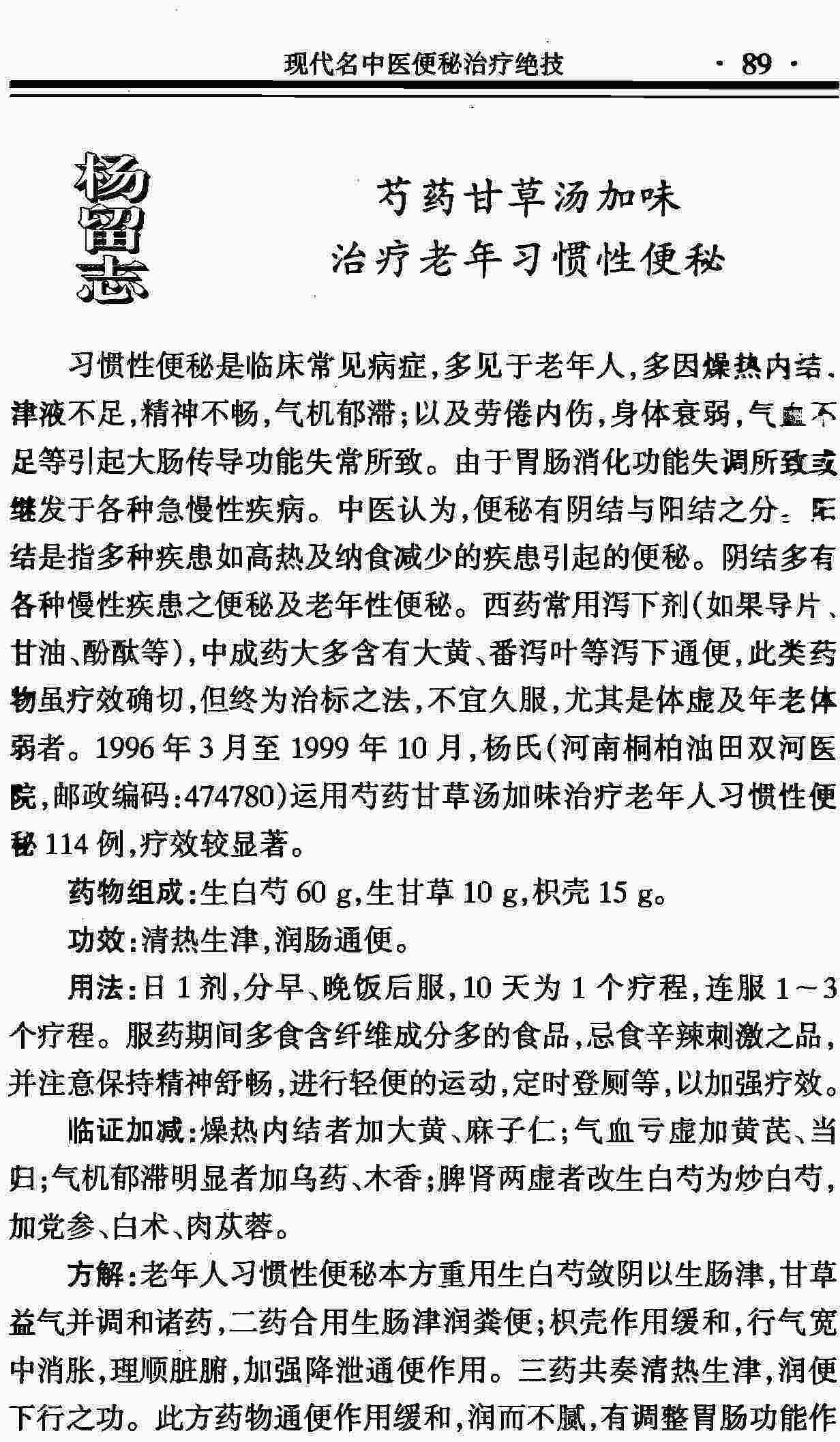 杨留志 芍药甘草汤加昧治疗老年习惯性便秘