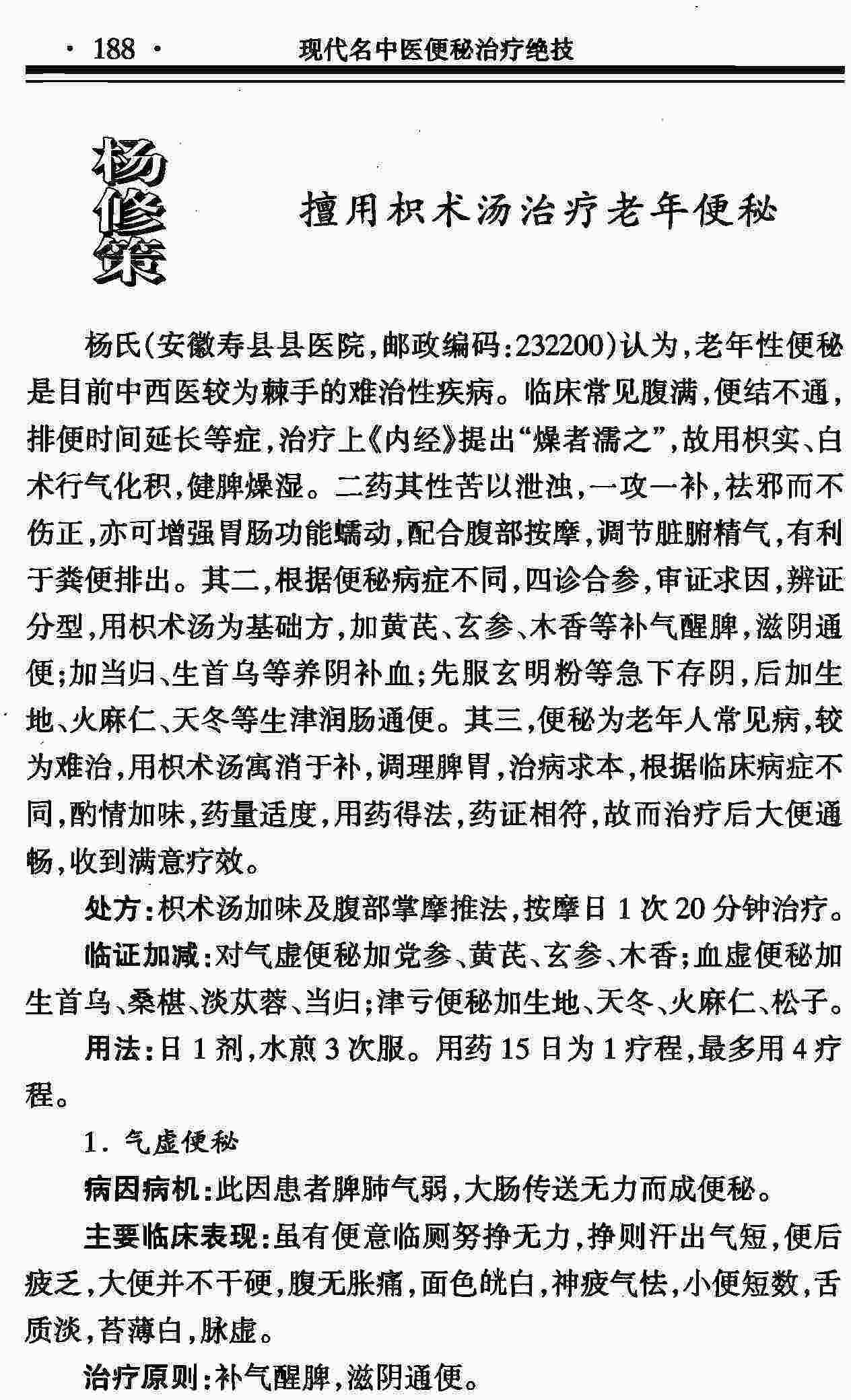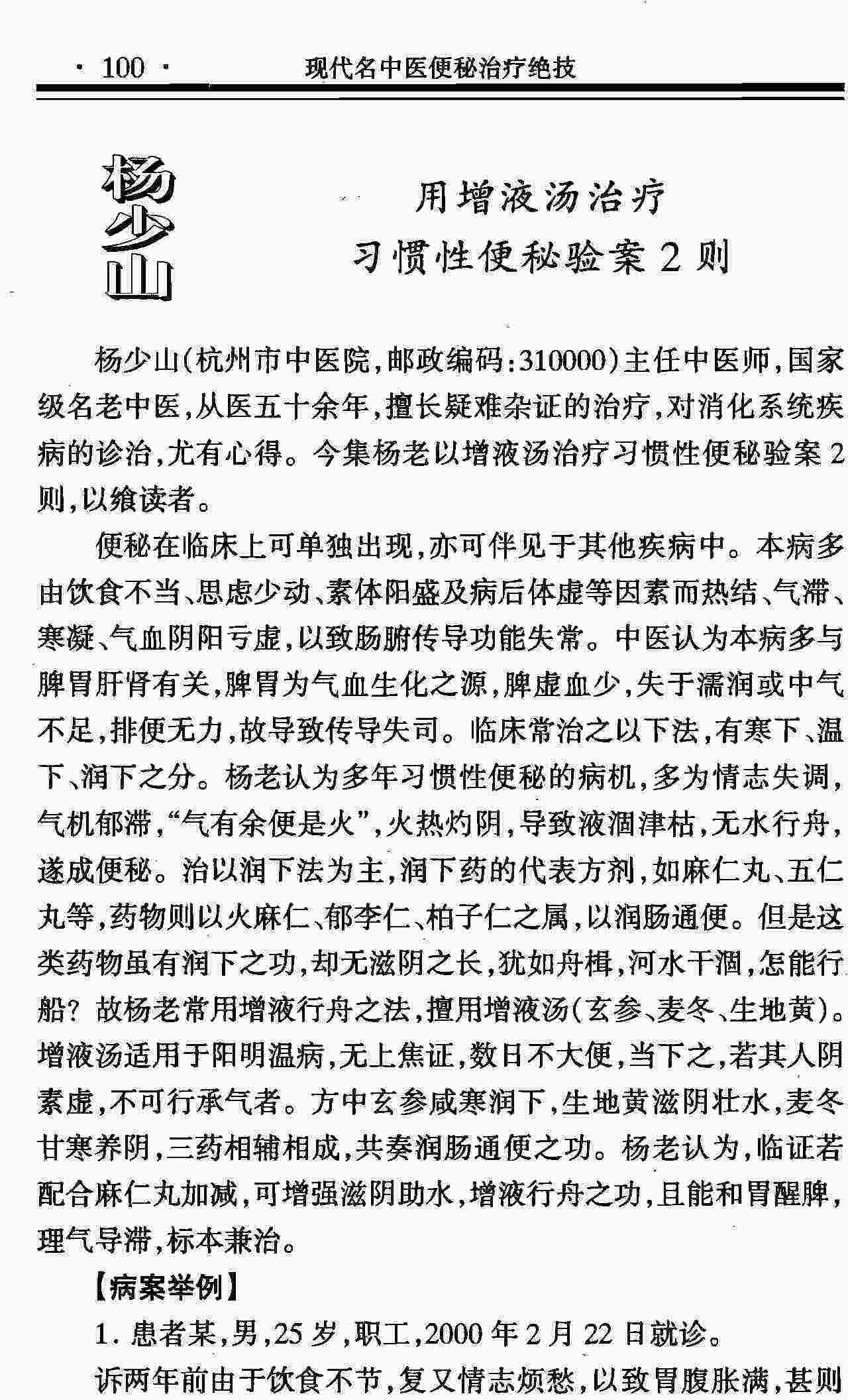杨少山 用增液汤治疗习惯性便秘验案2则