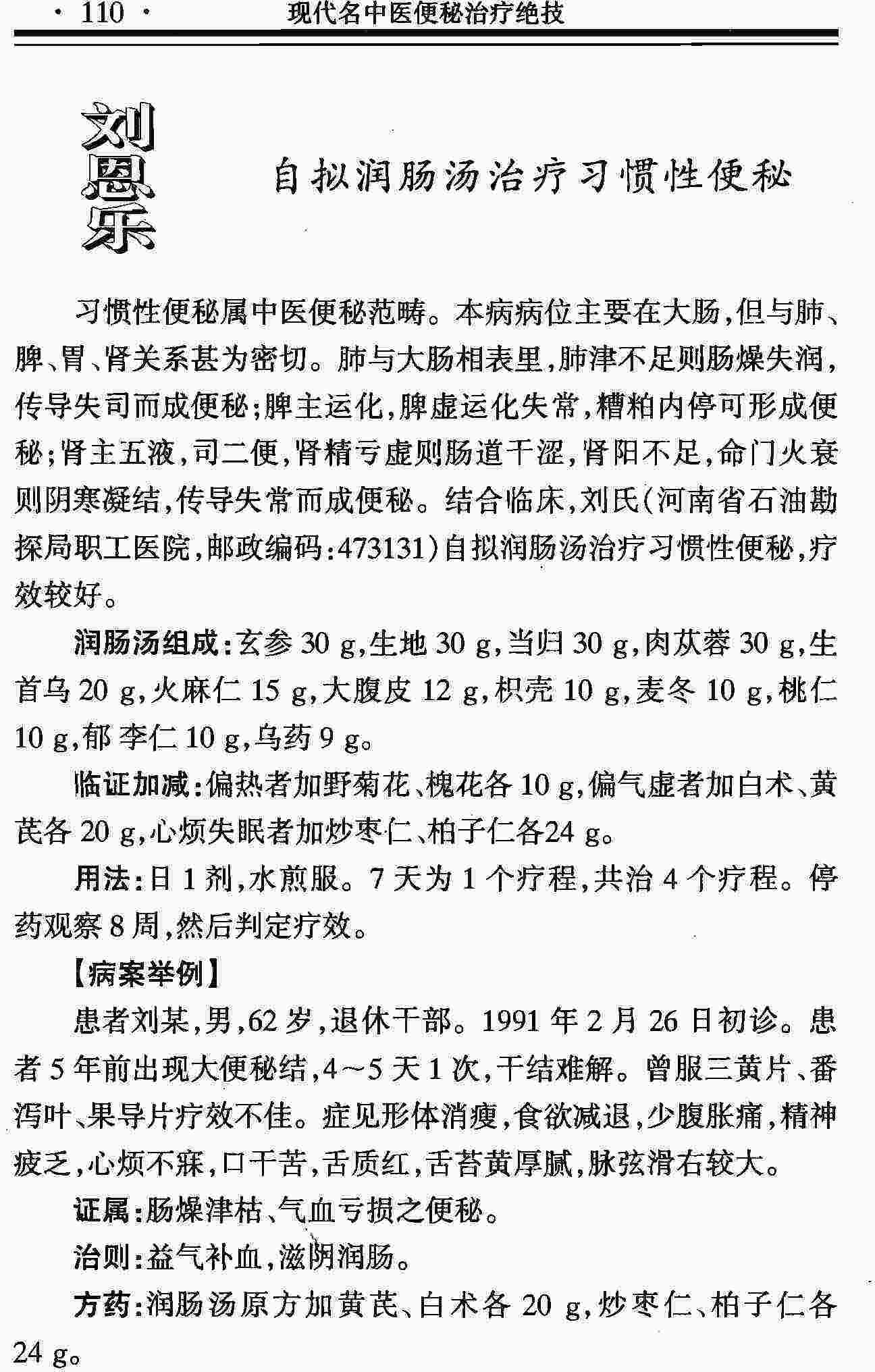 刘恩乐 自拟润肠汤治疗习惯性便秘