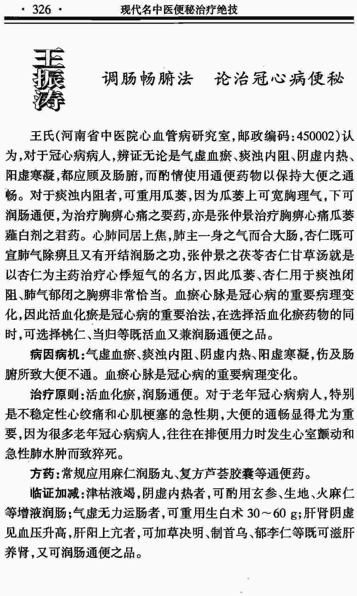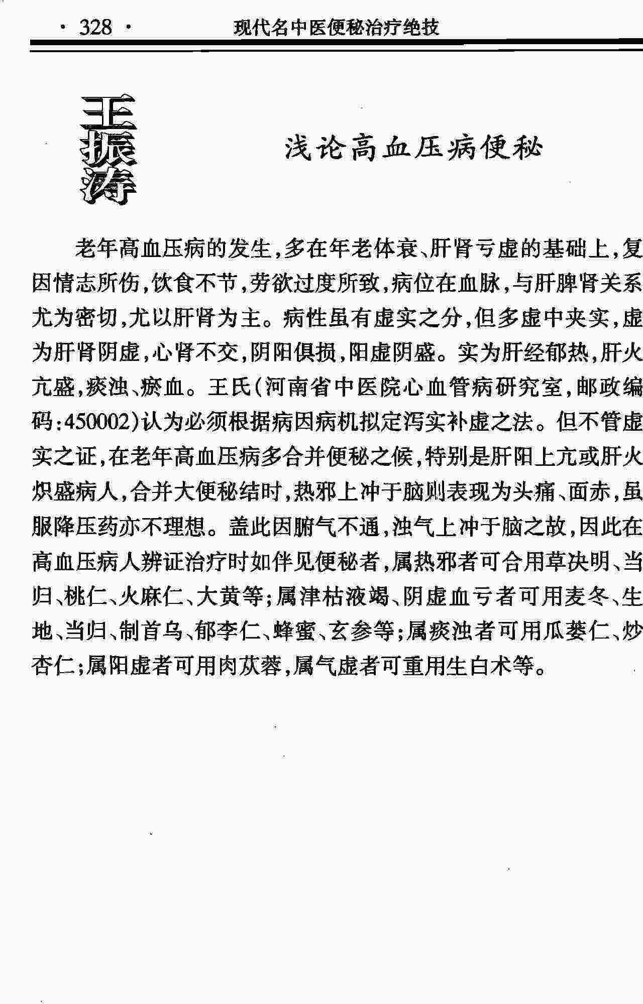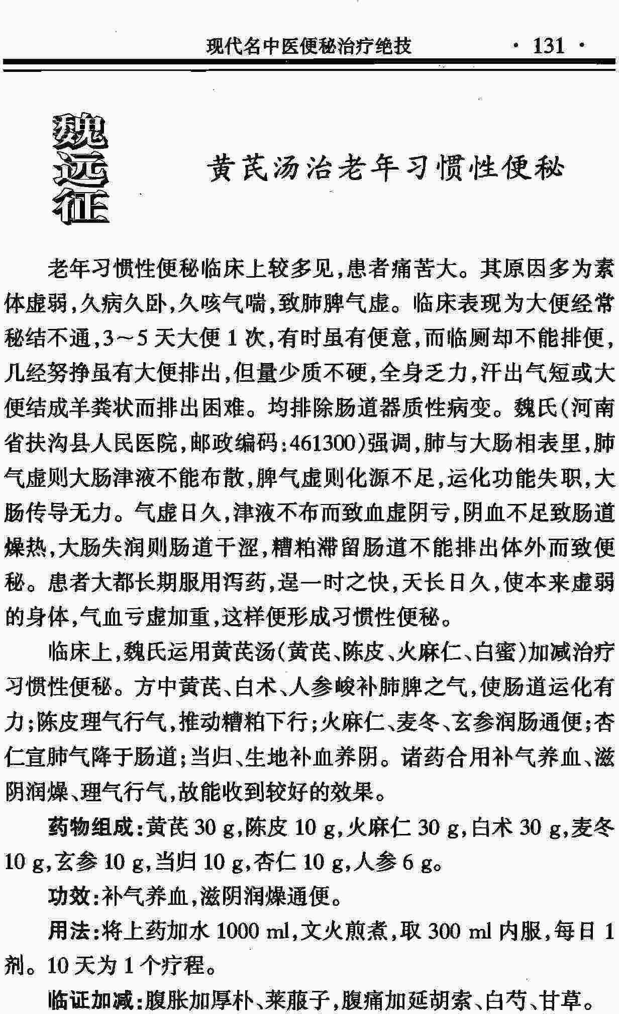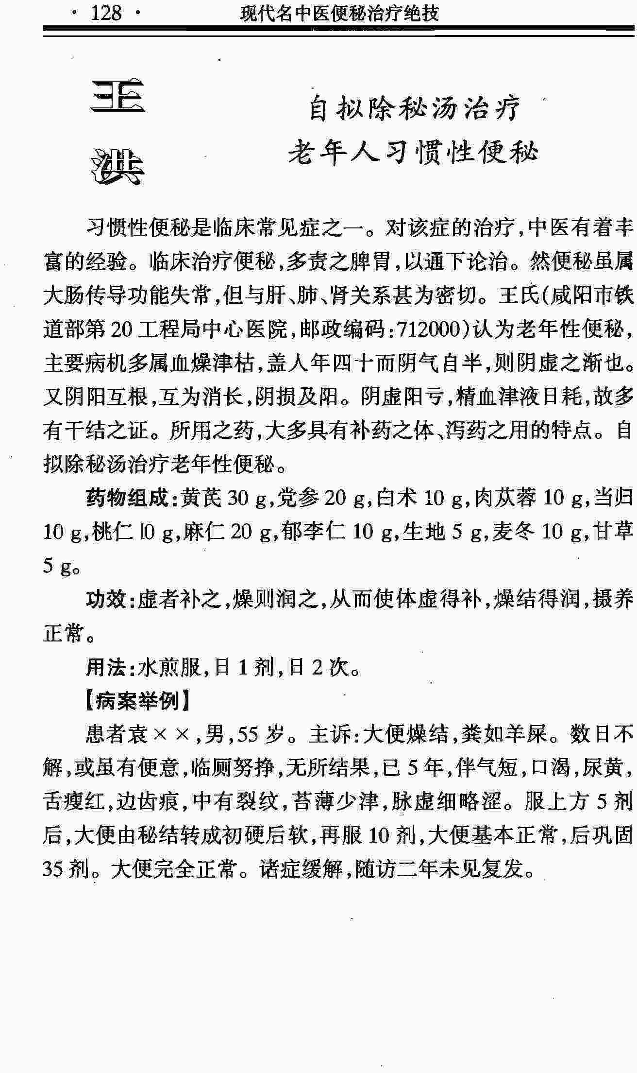 王洪自拟除秘汤治疗老年人习惯性便秘