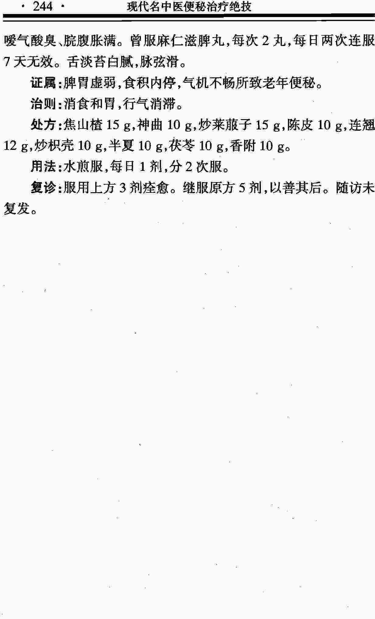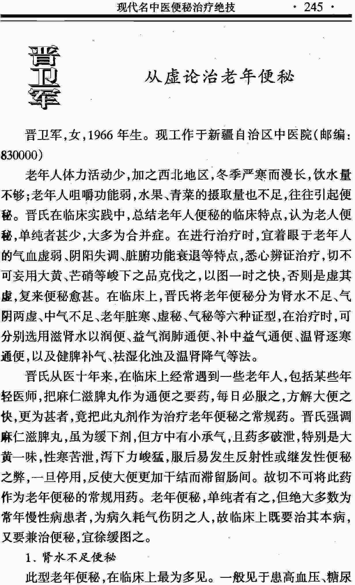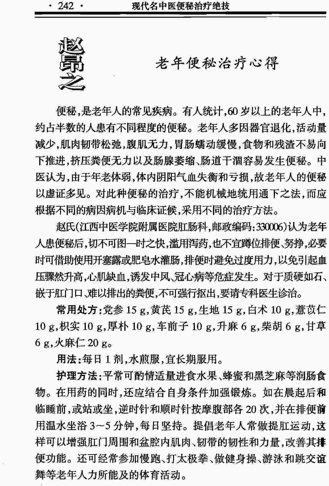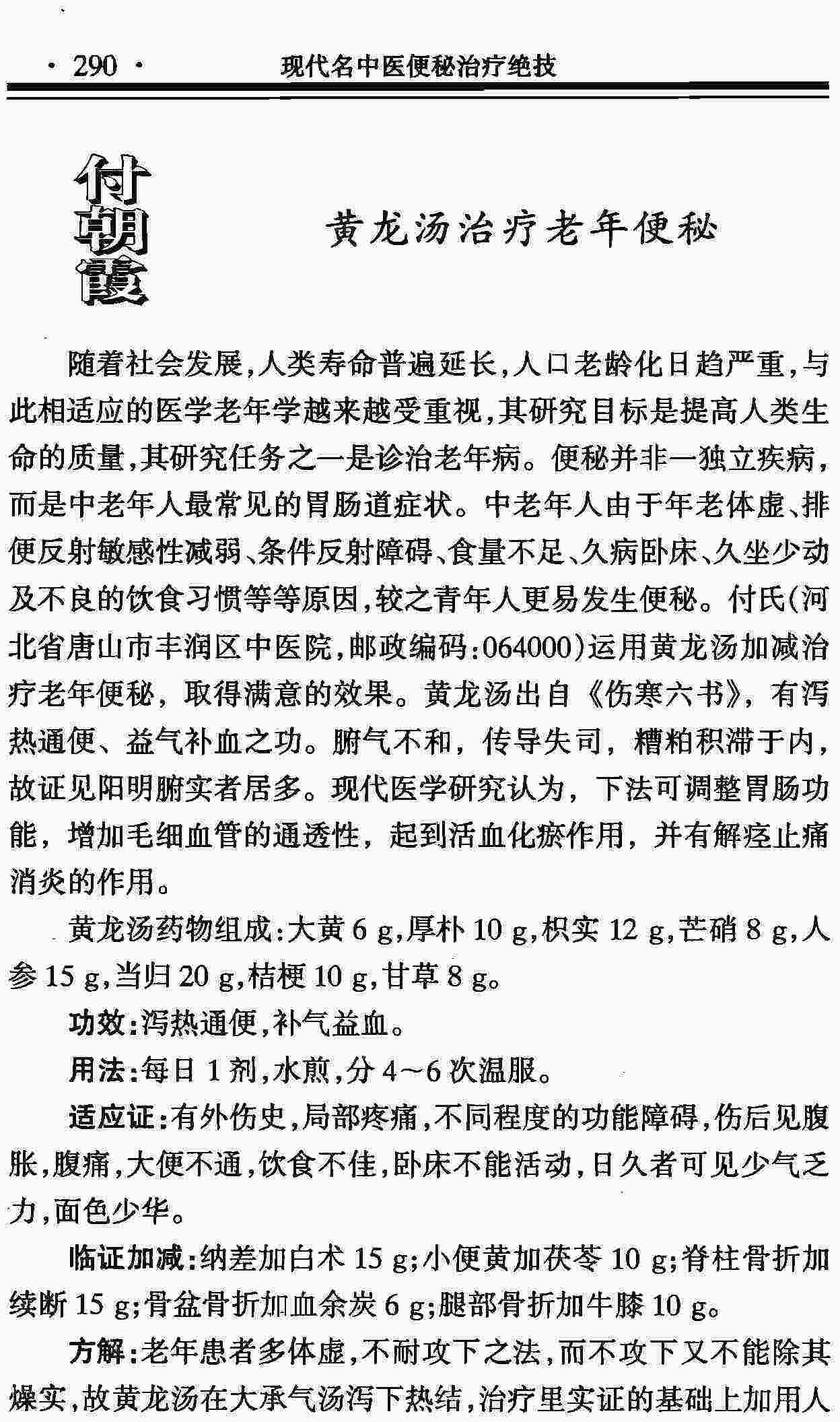王洪自拟除秘汤治疗老年人习惯性便秘