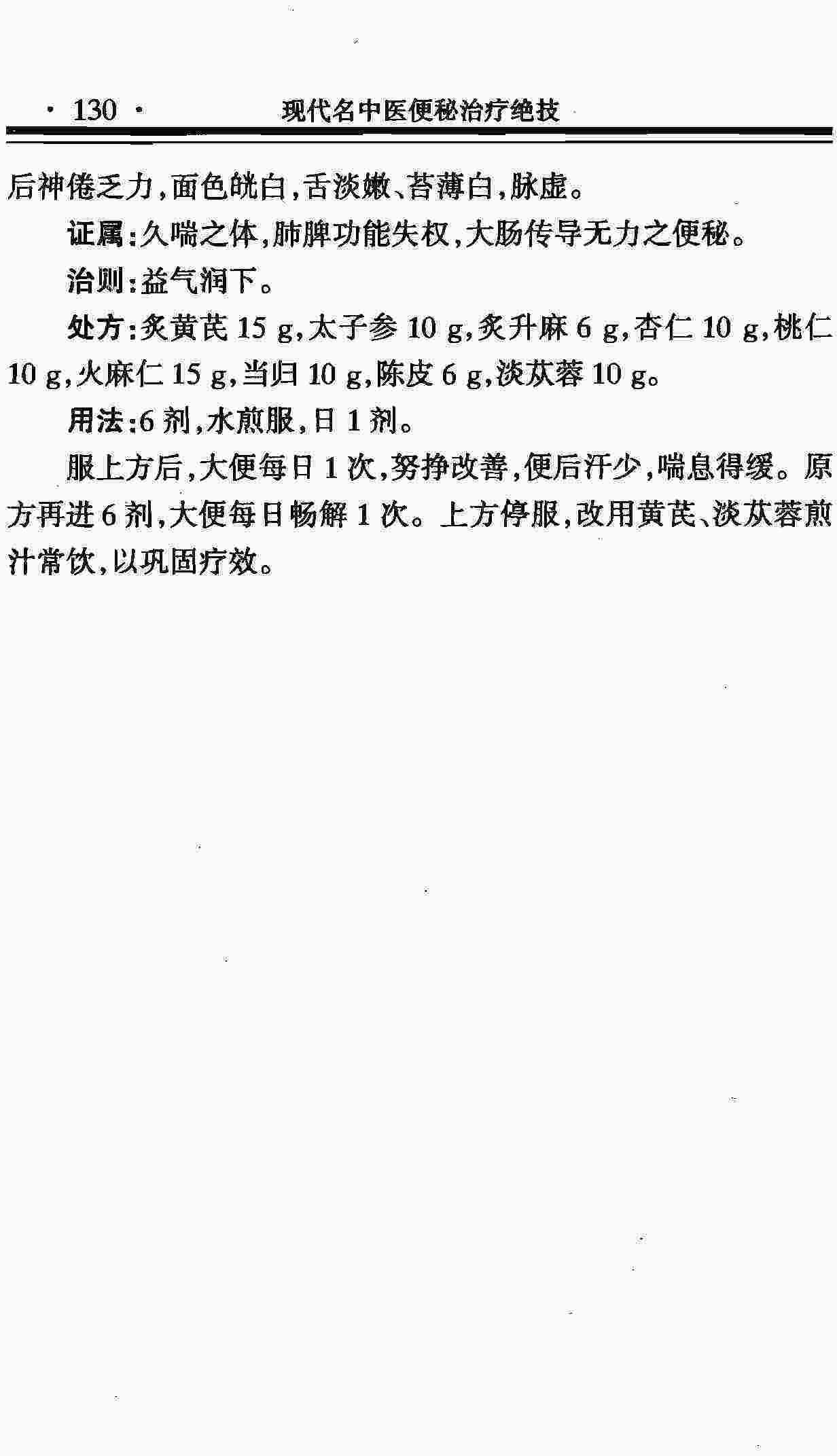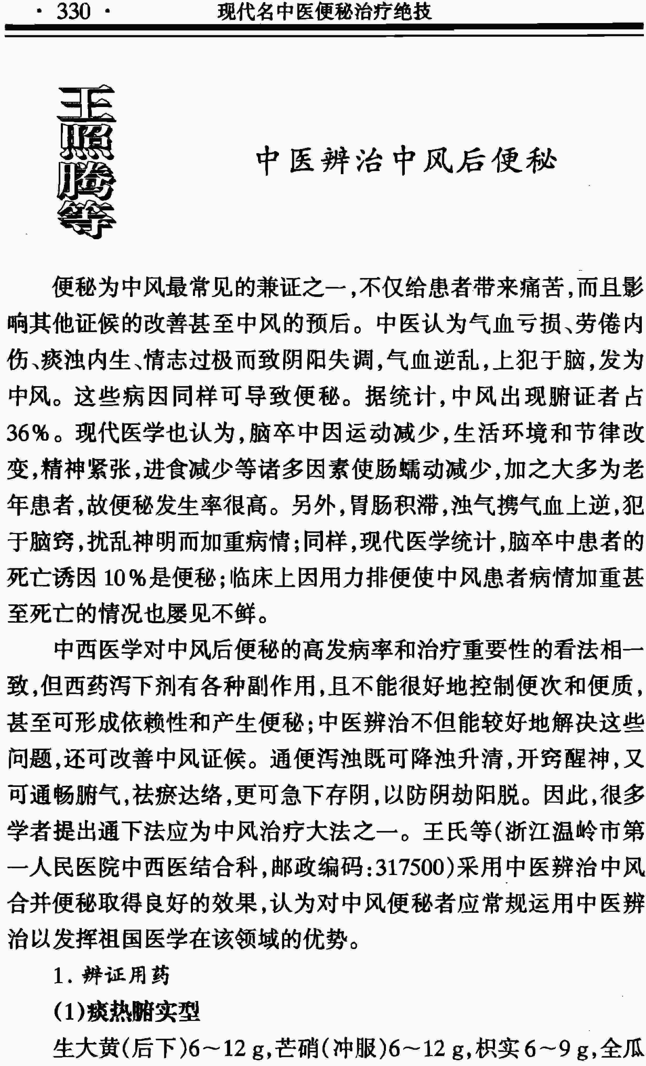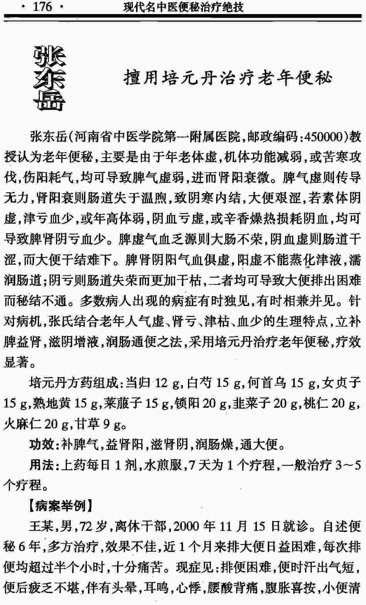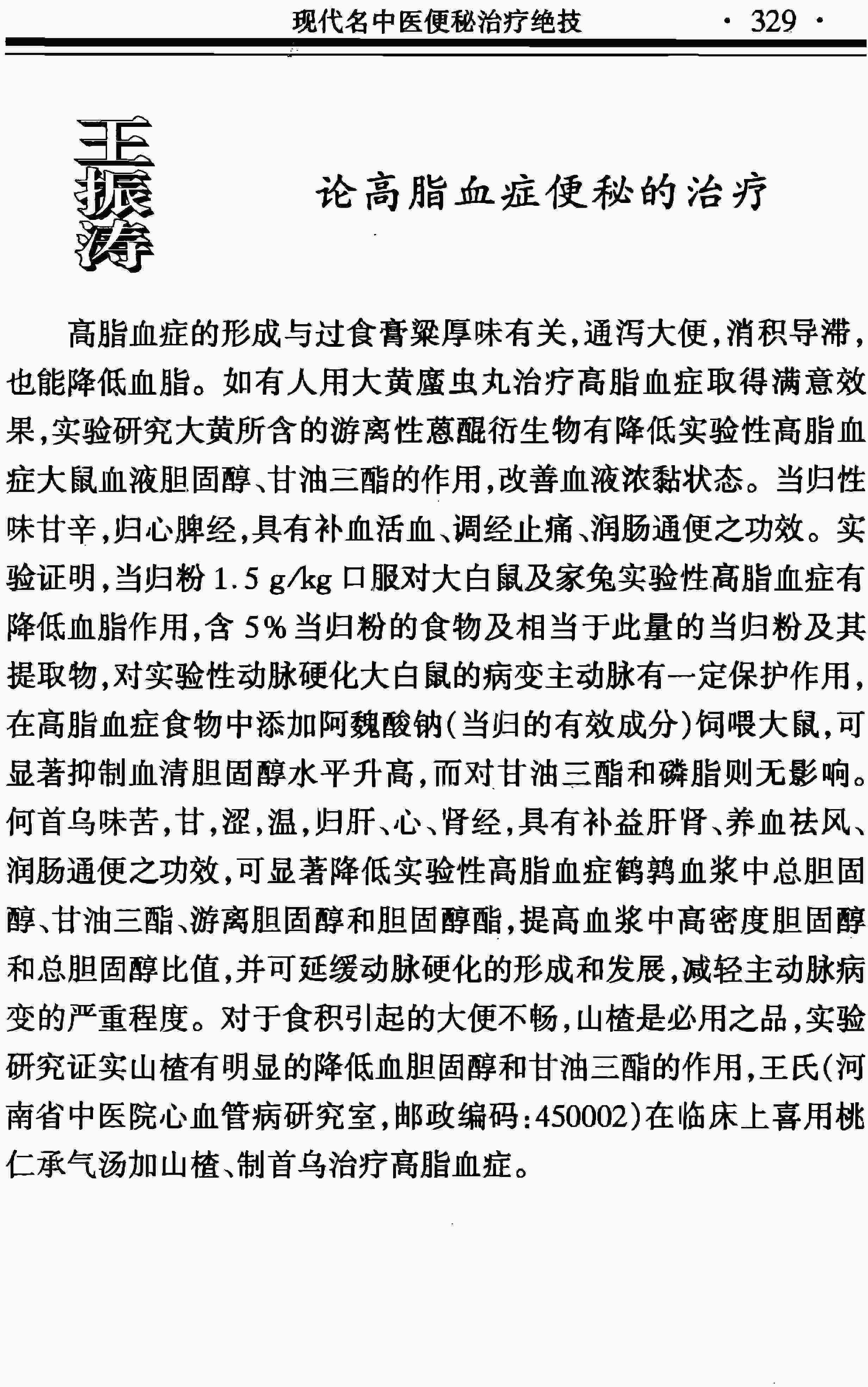 王洪自拟除秘汤治疗老年人习惯性便秘