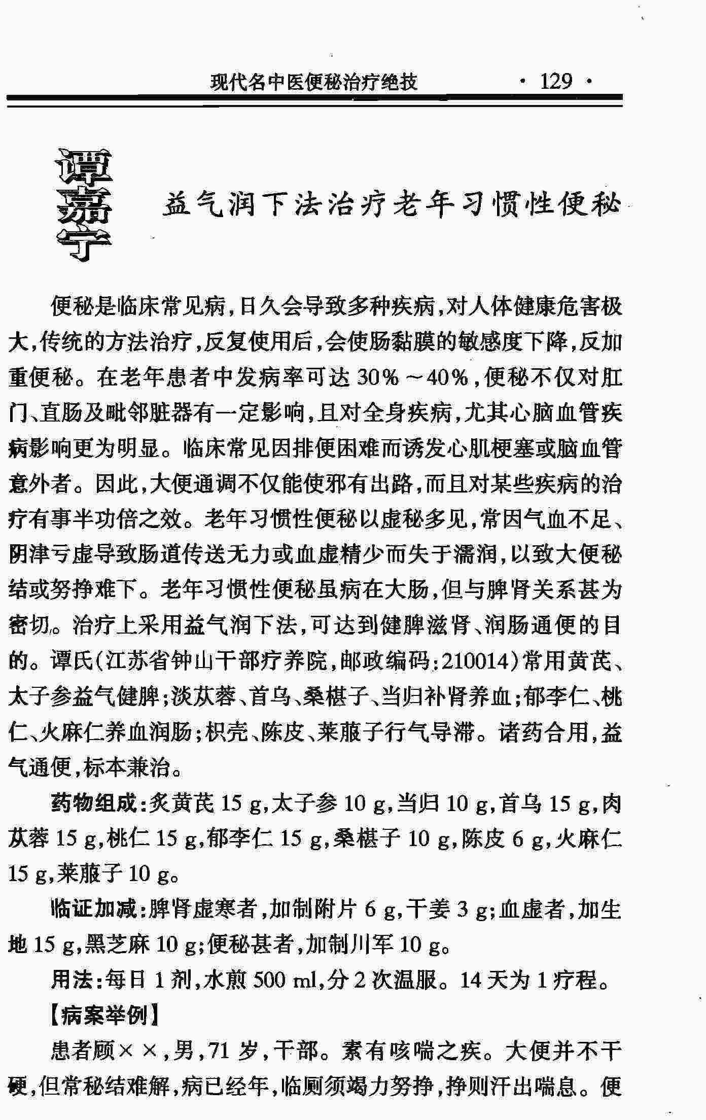 谭嘉宁 益气涧下法治疗老年习惯性便秘