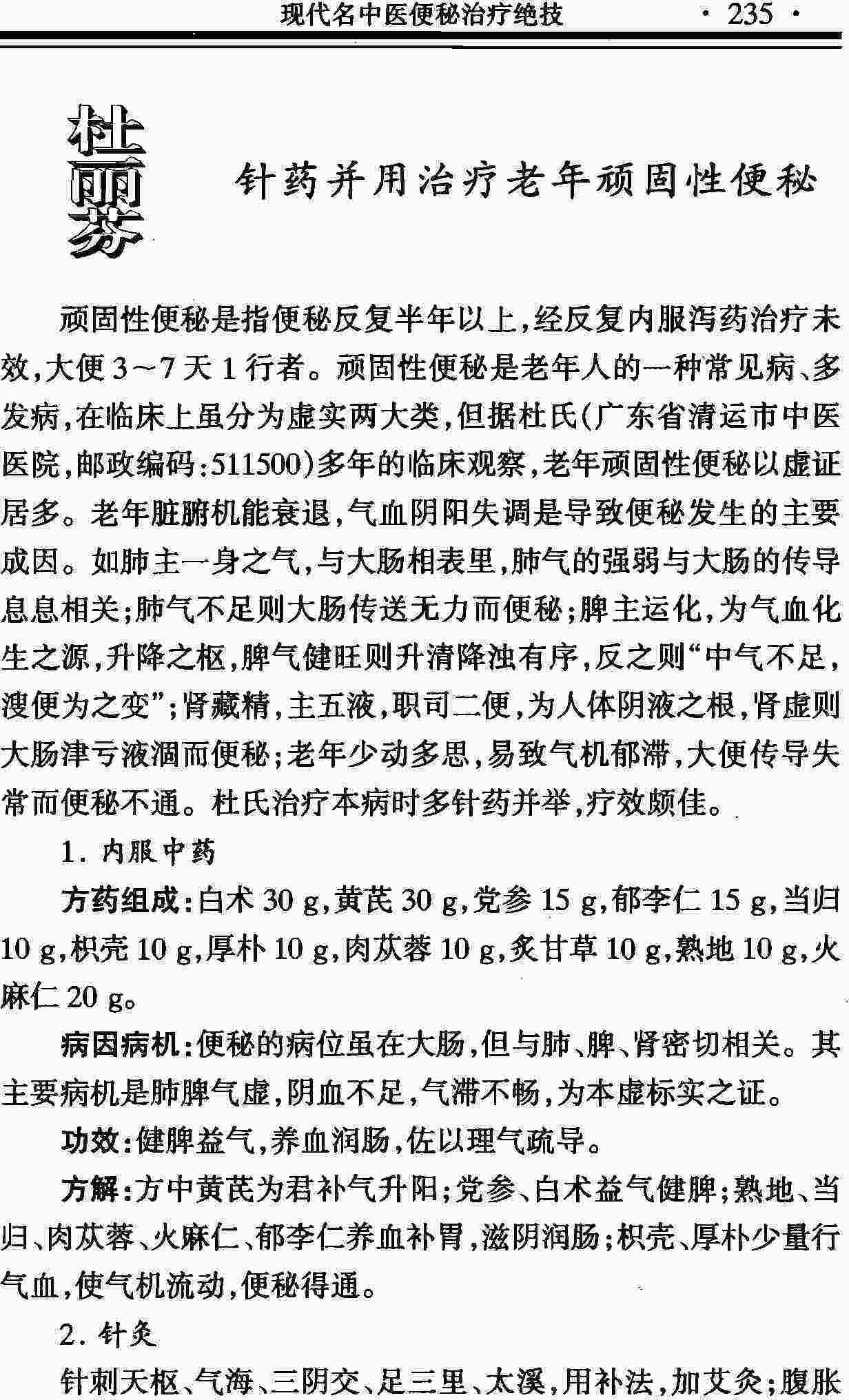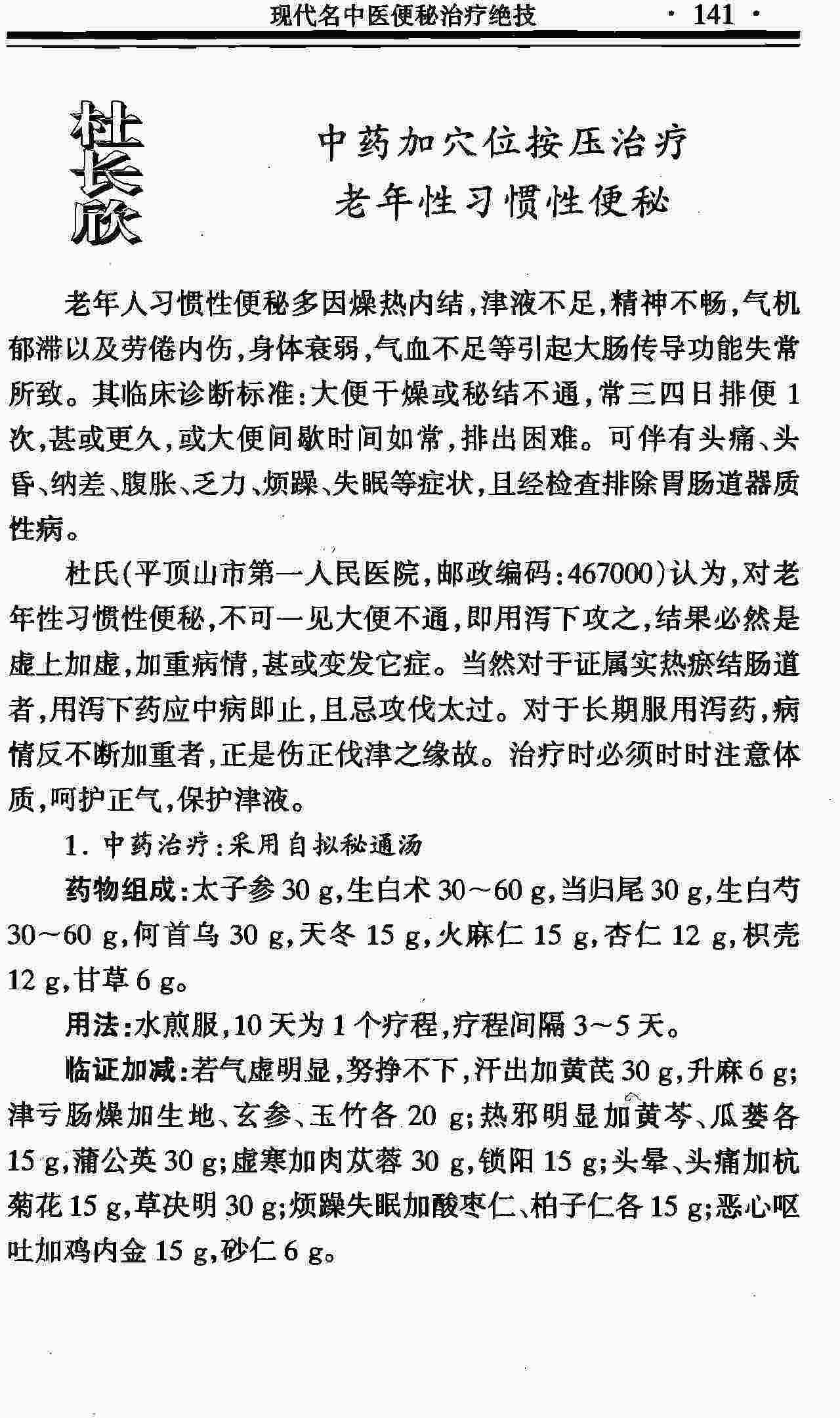 杜长欣 中药加穴位按压治疗老年性习惯性便秘