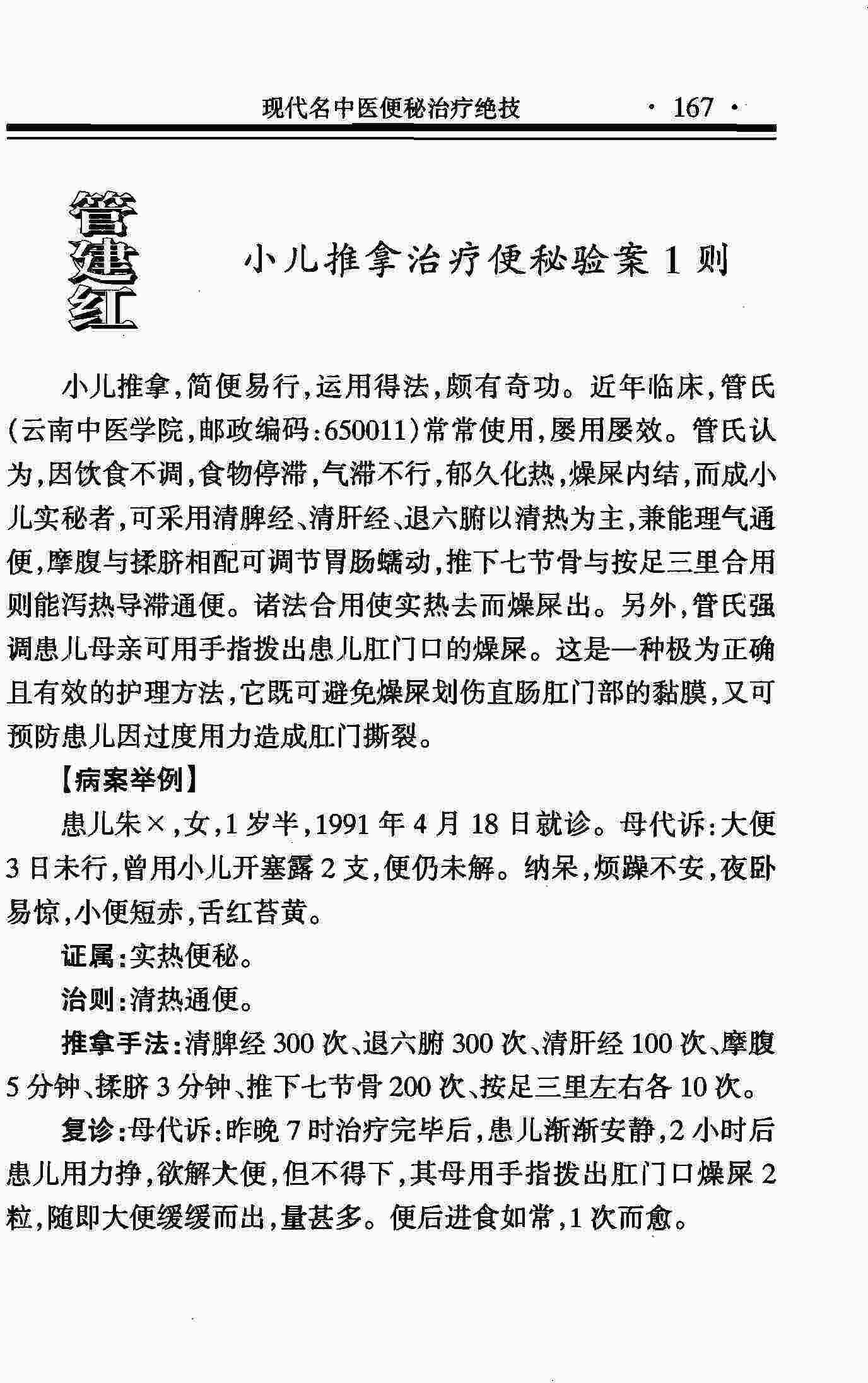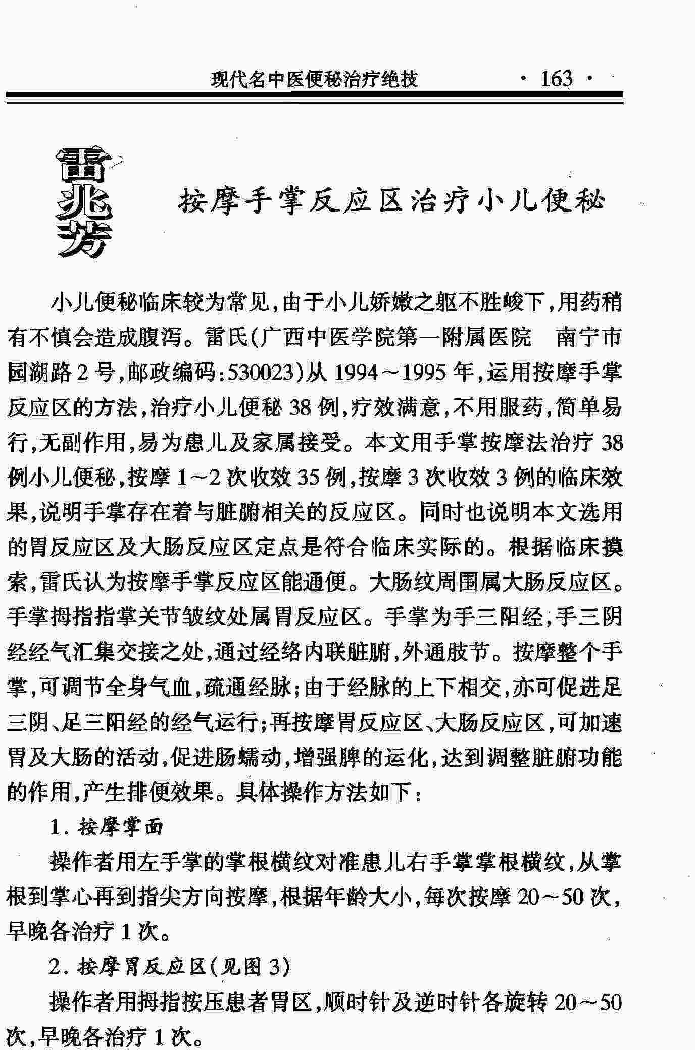 雷兆芳 按摩手掌反应区治疗小儿便秘
