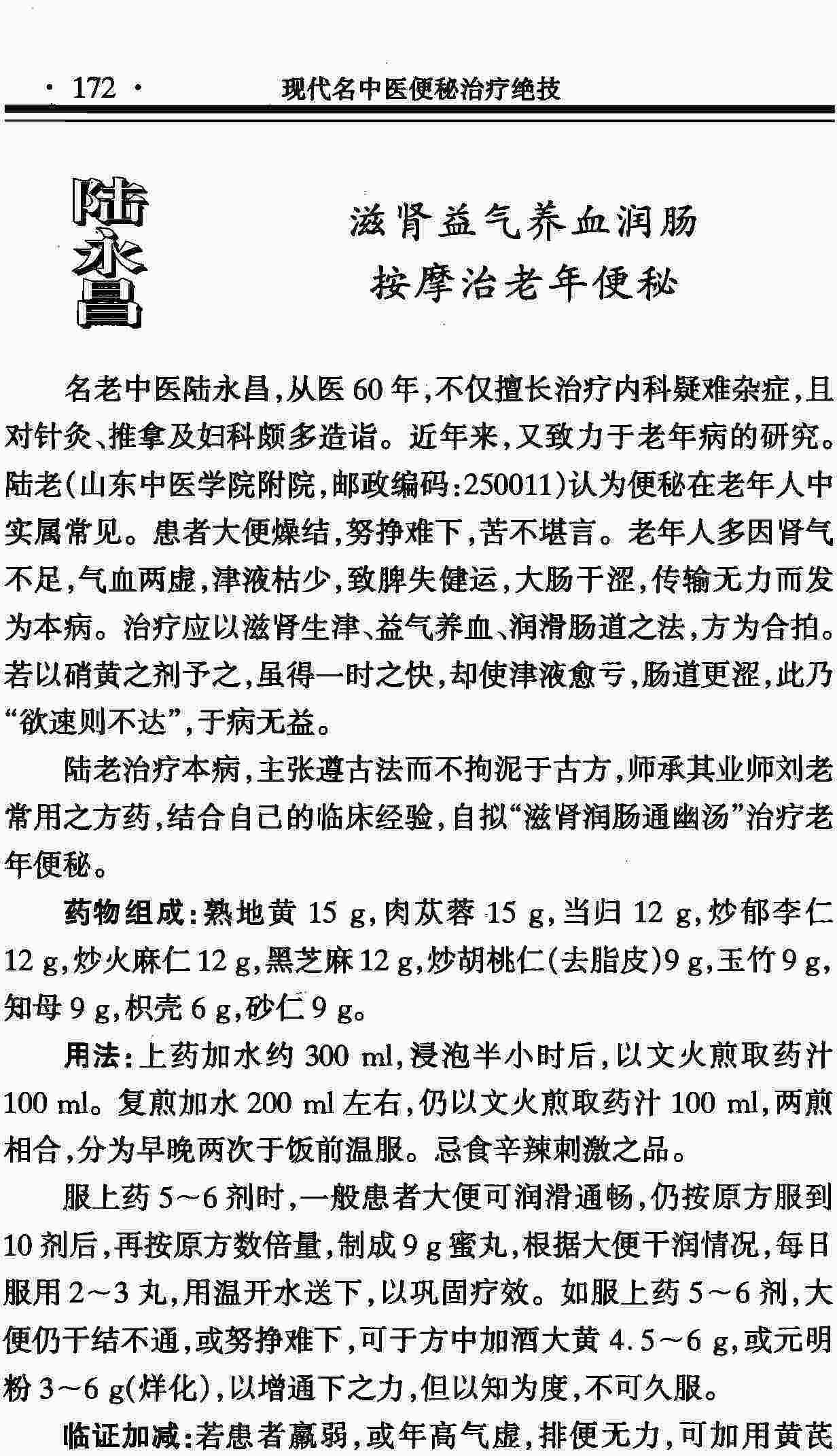 陆永昌 激肾益气养血润肠按摩治老年便秘