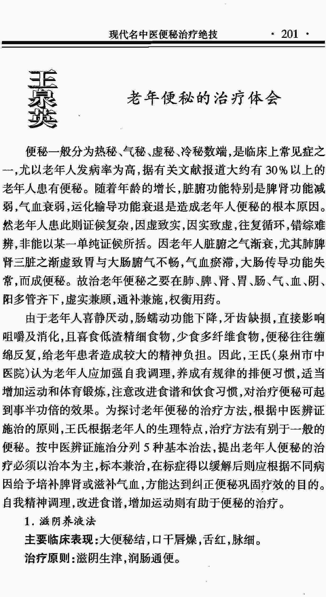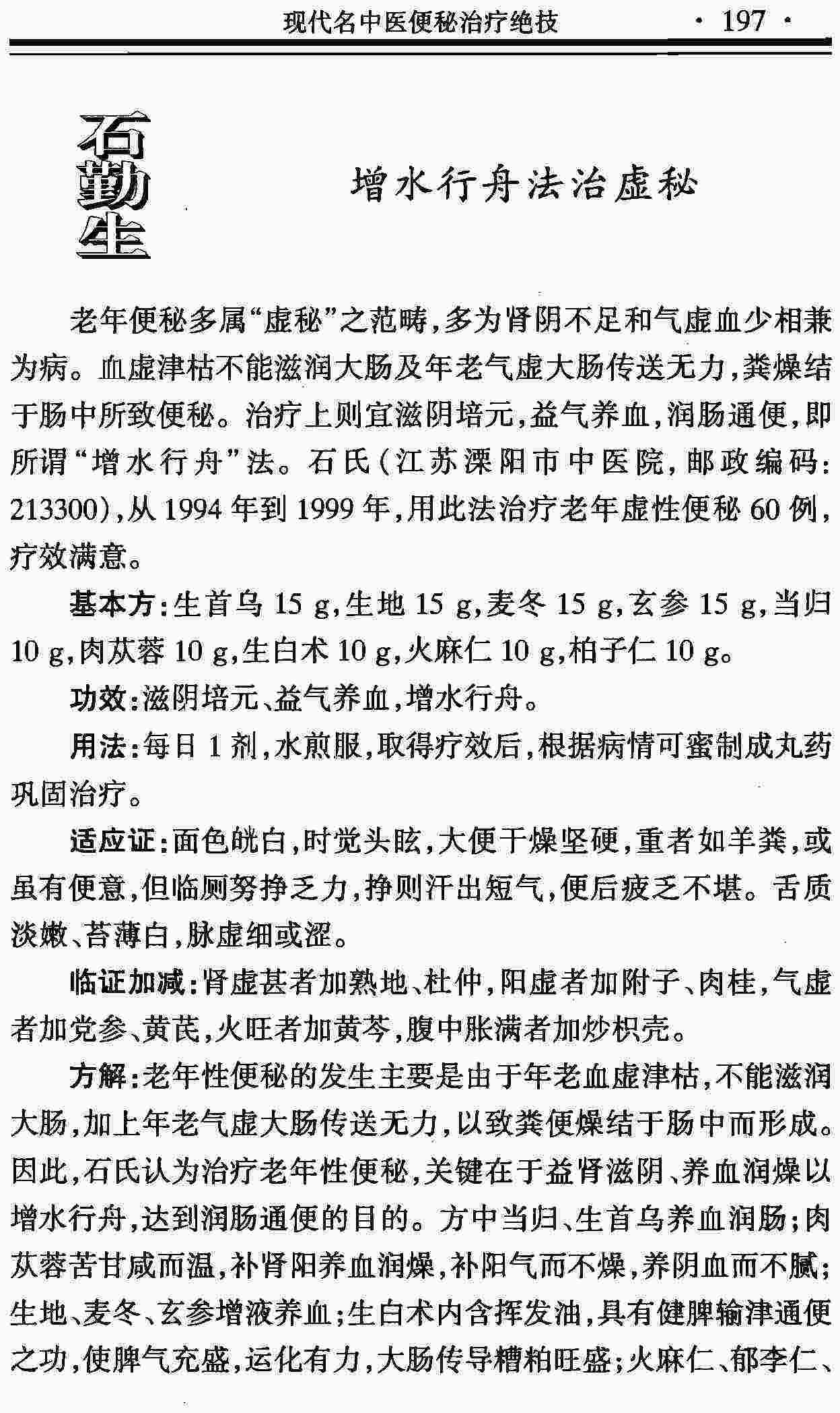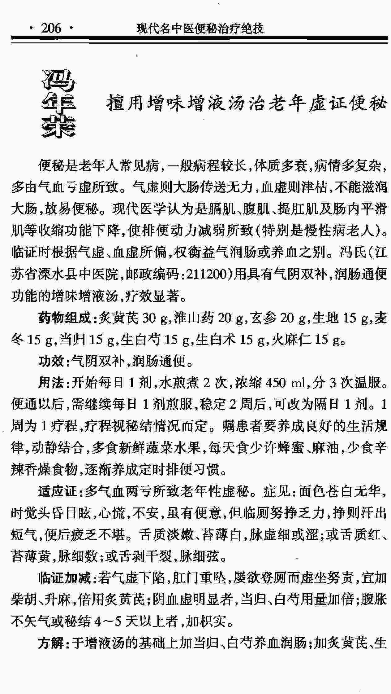 冯年荣 擅用增昧增液汤治老年虚证便秘