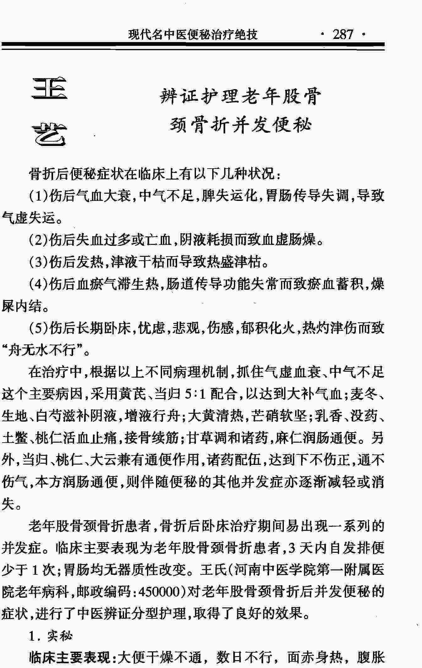 王艺 辨证护理老年股骨颈骨折并发便秘