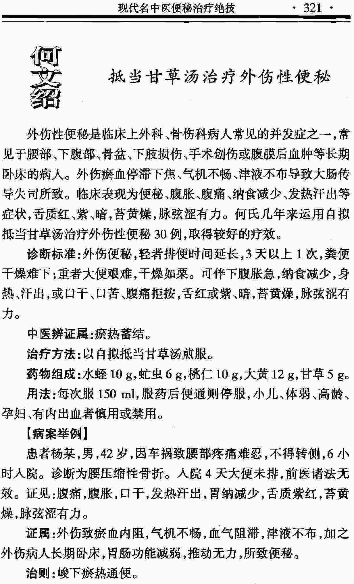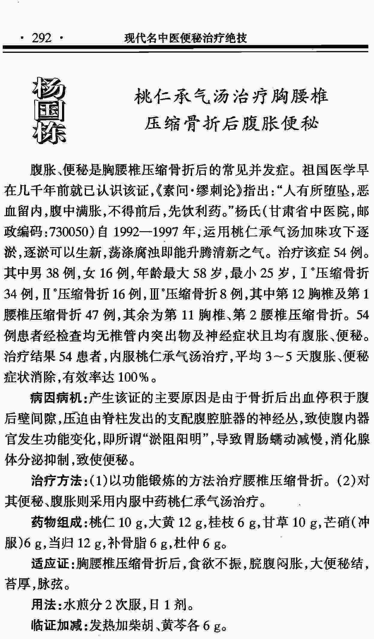 杨国栋 桃仁承气汤治疗胸腰椎压缩骨折后腹胀便秘