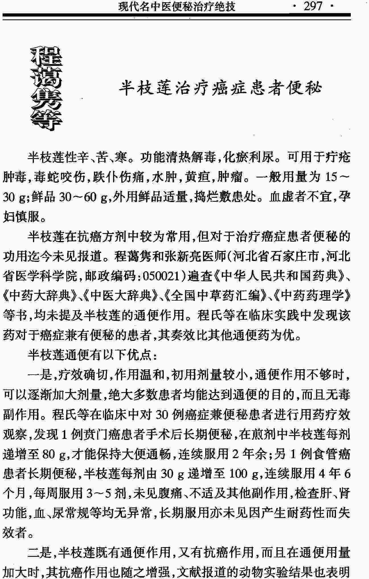 程蔼隽等 半枝莲治疗癌症患者便秘