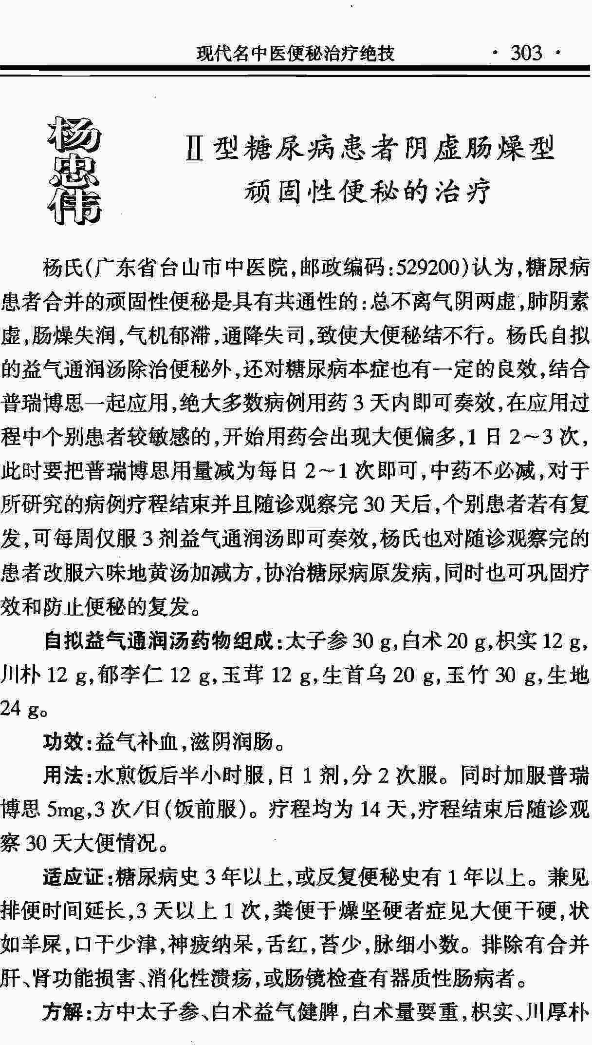 杨忠伟 II型精尿病患者阴虚肠燥型顽固性便秘的治疗