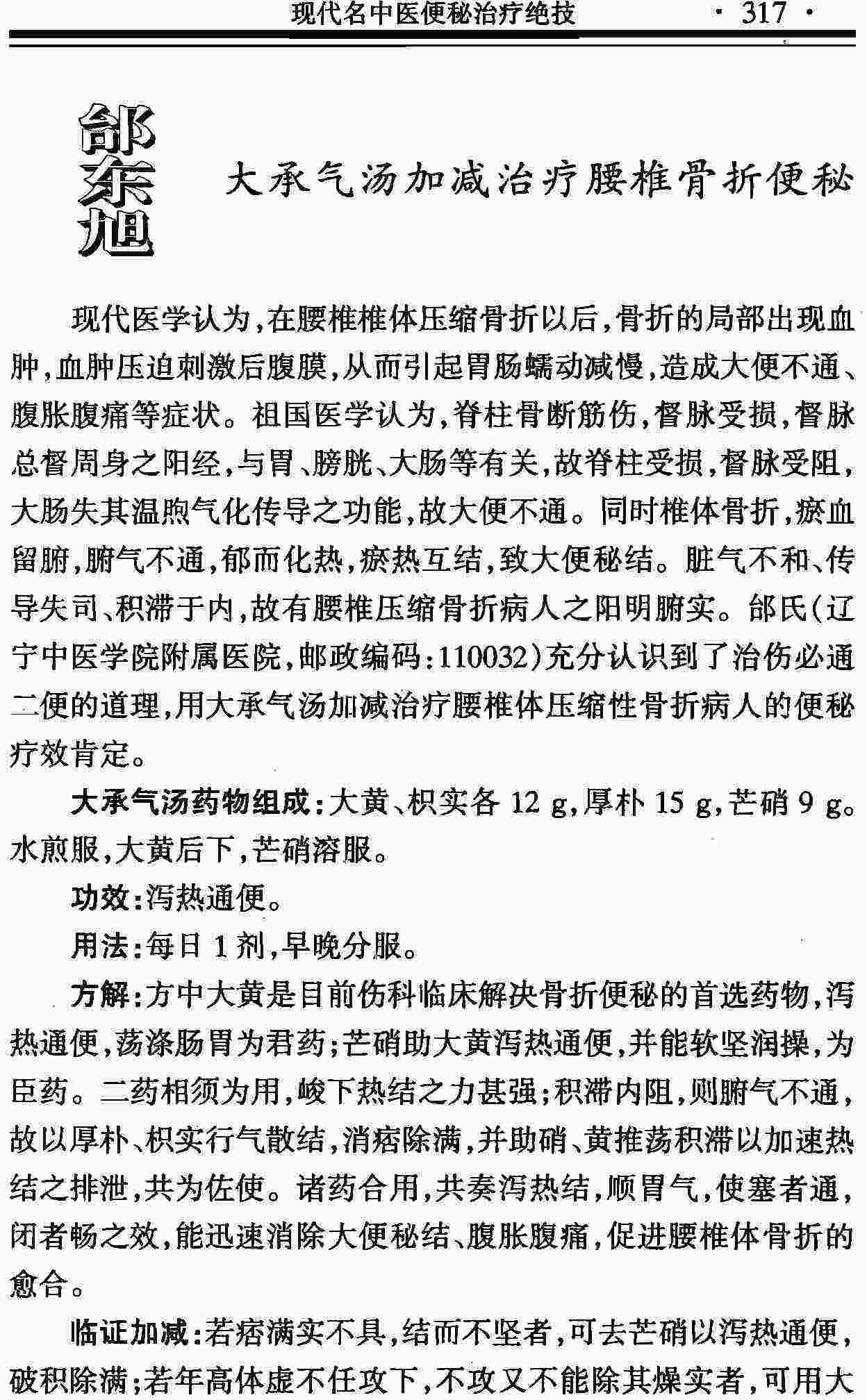 邰东旭 大承气汤加减治疗腰椎骨折便秘