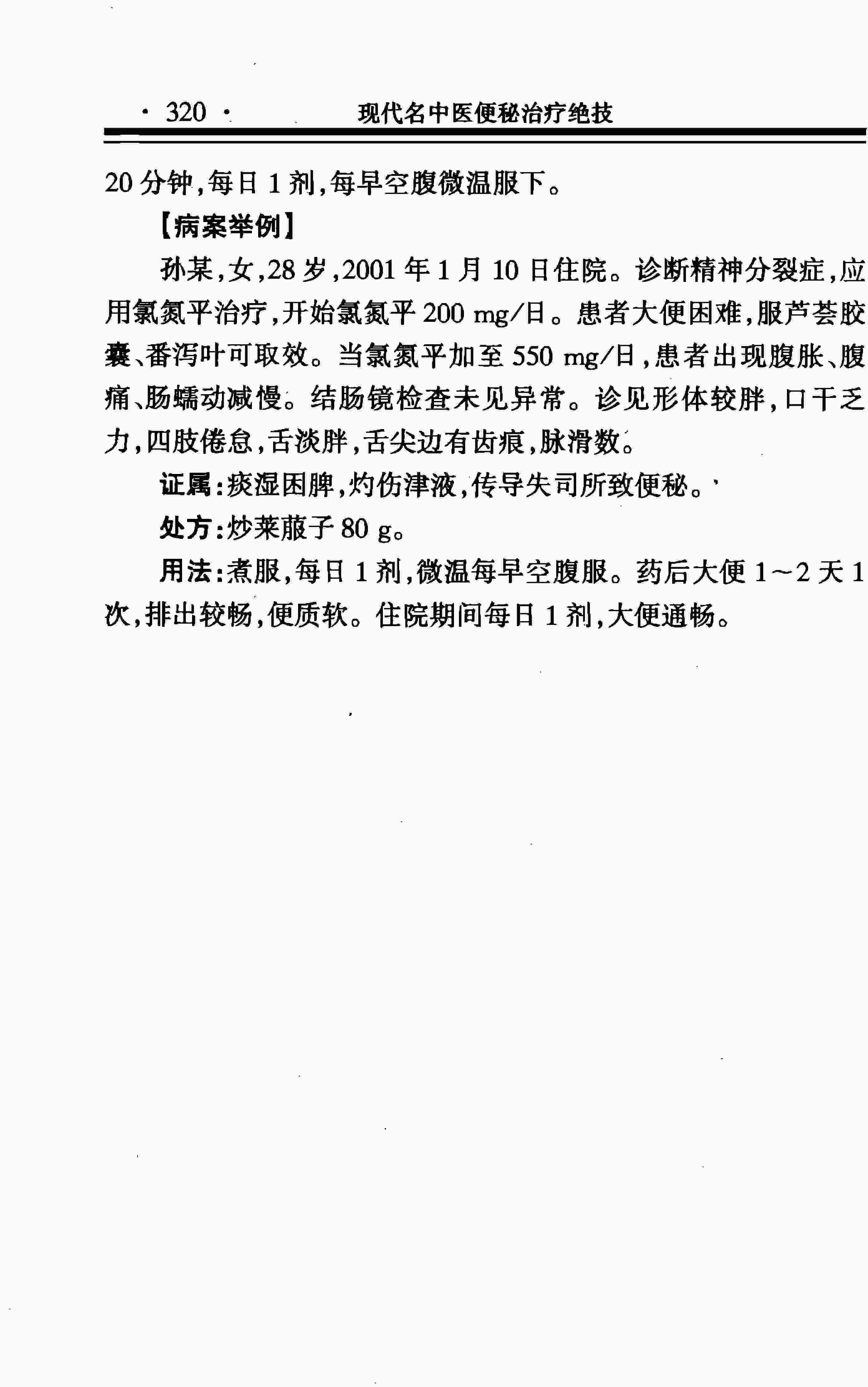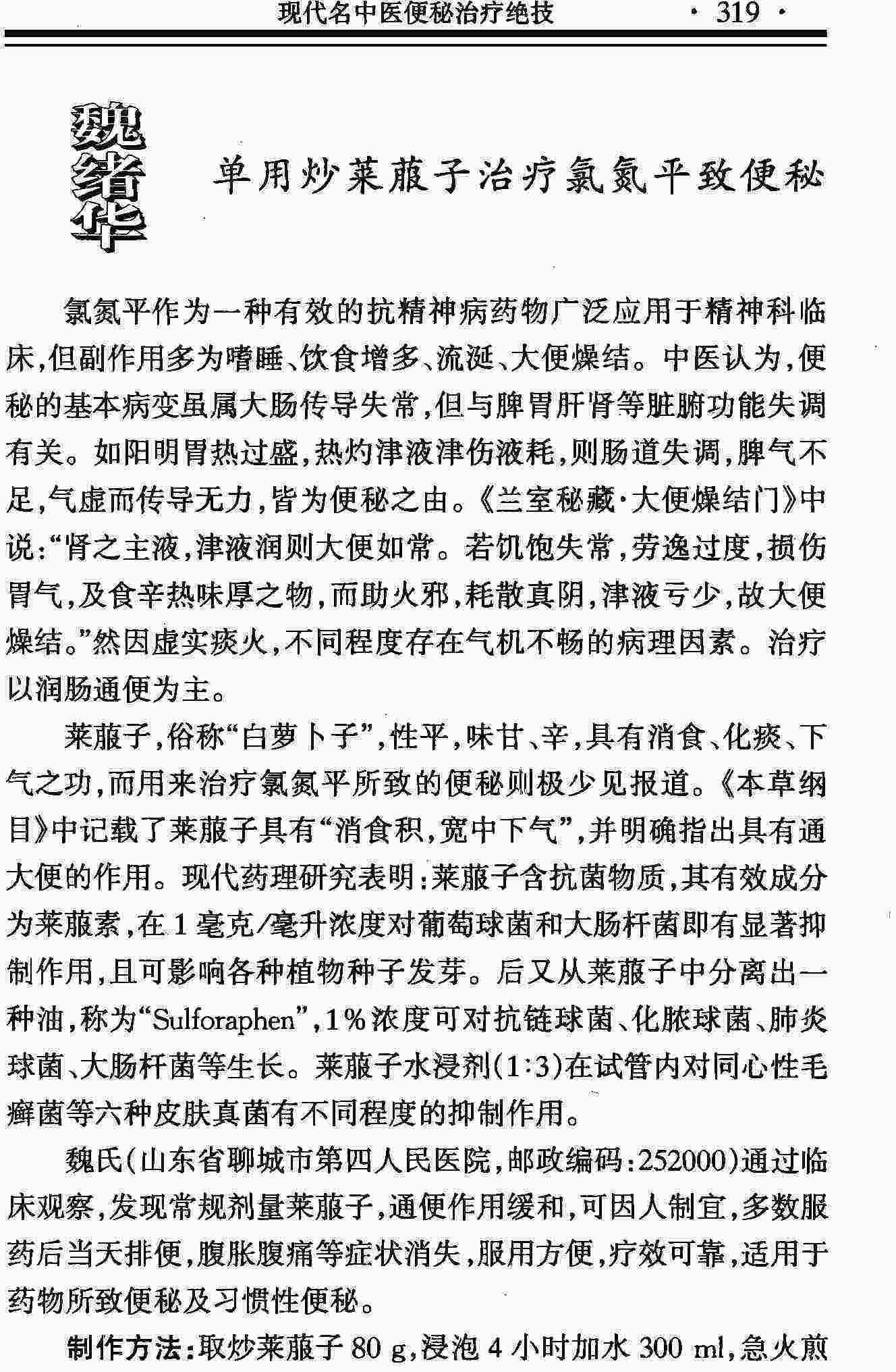 魏绪华 单用炒莱萼子治疗氯氮平致便秘