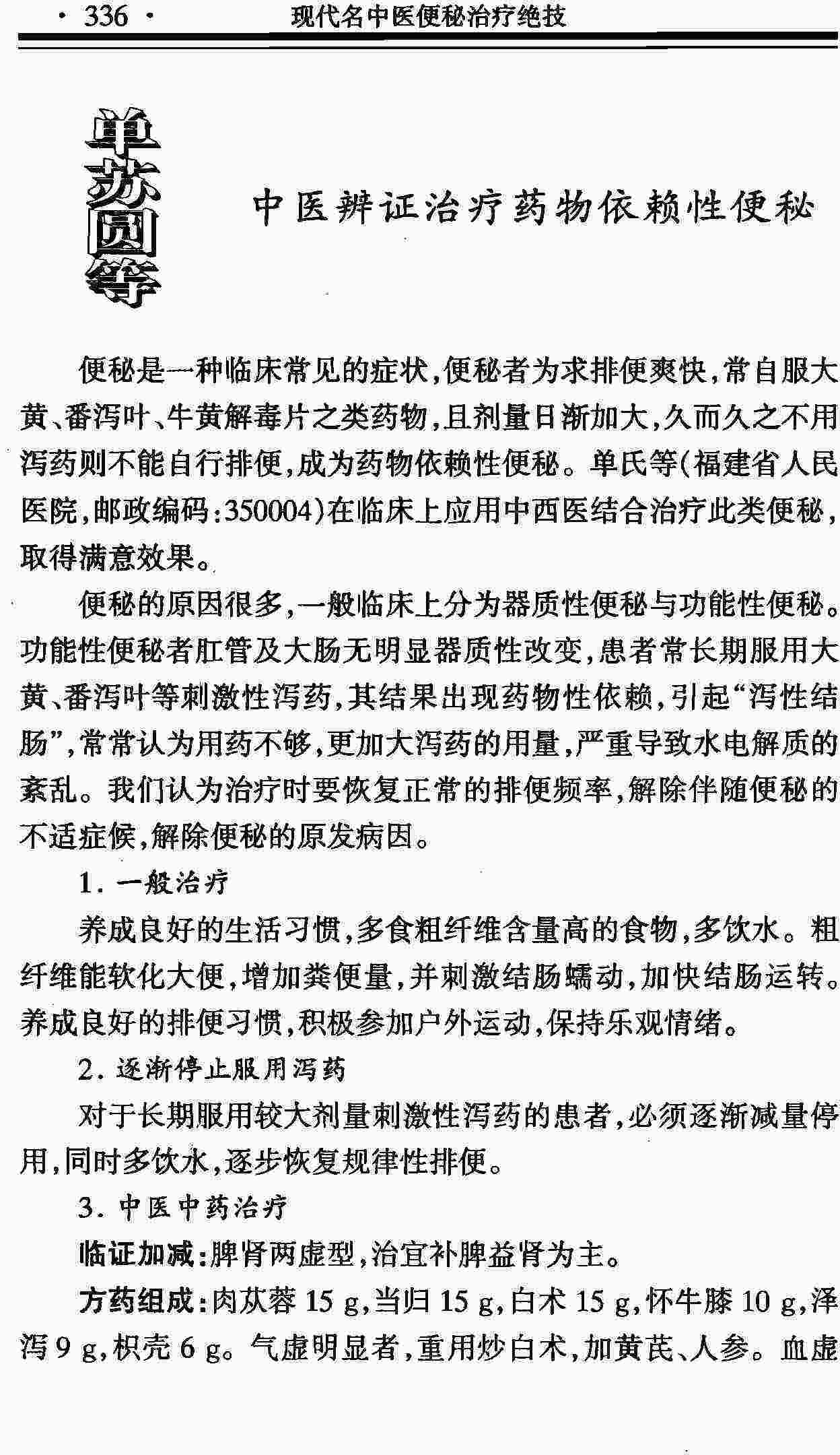 单苏圆等 中医辨证治疗药物依赖性便秘