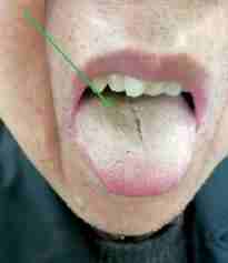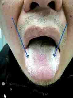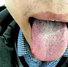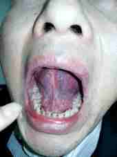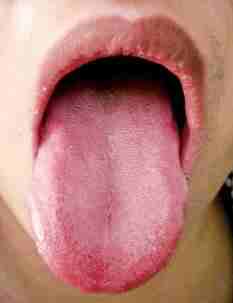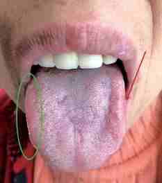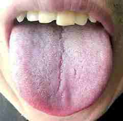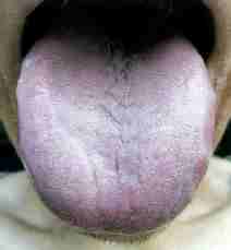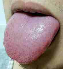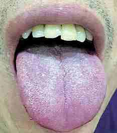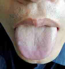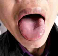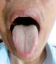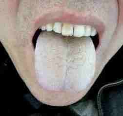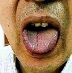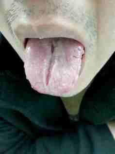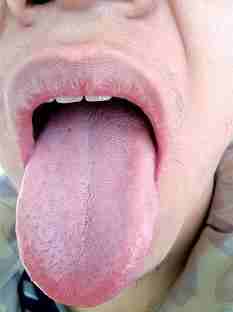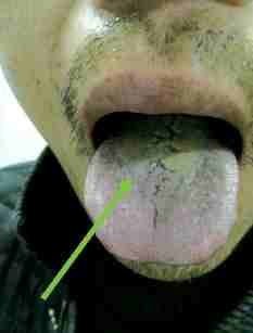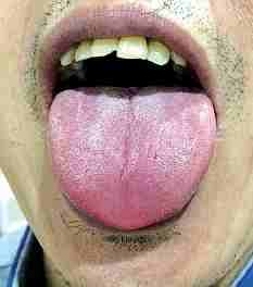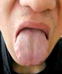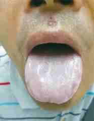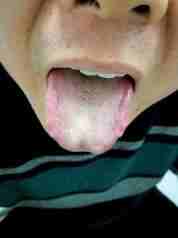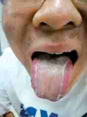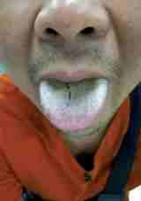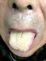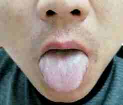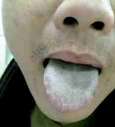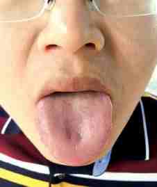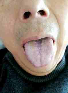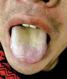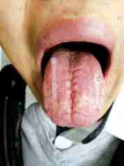 看看图198这位患者,因长期抽烟染了一层黄苔,这时不要误认为他有湿热。