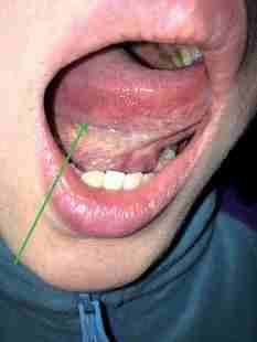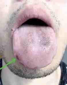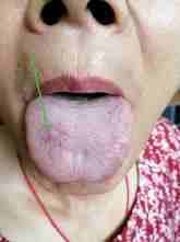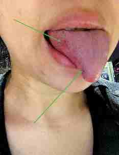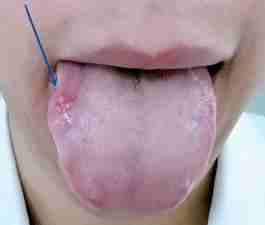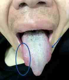 图15这个患者左侧舌边突出,西医考虑诊断舌下血管瘤。