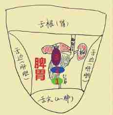 这应该是脏腑在舌面分部的较早记载了,后世医家大都在此基础上进行发挥,几乎没有太大进展。