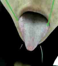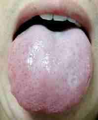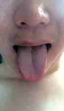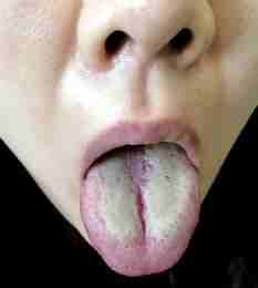 奇妙的是,基于这样的原理,通过仔细观察图10中的舌苔,我诊断出下图这位患者患一侧腹痛。